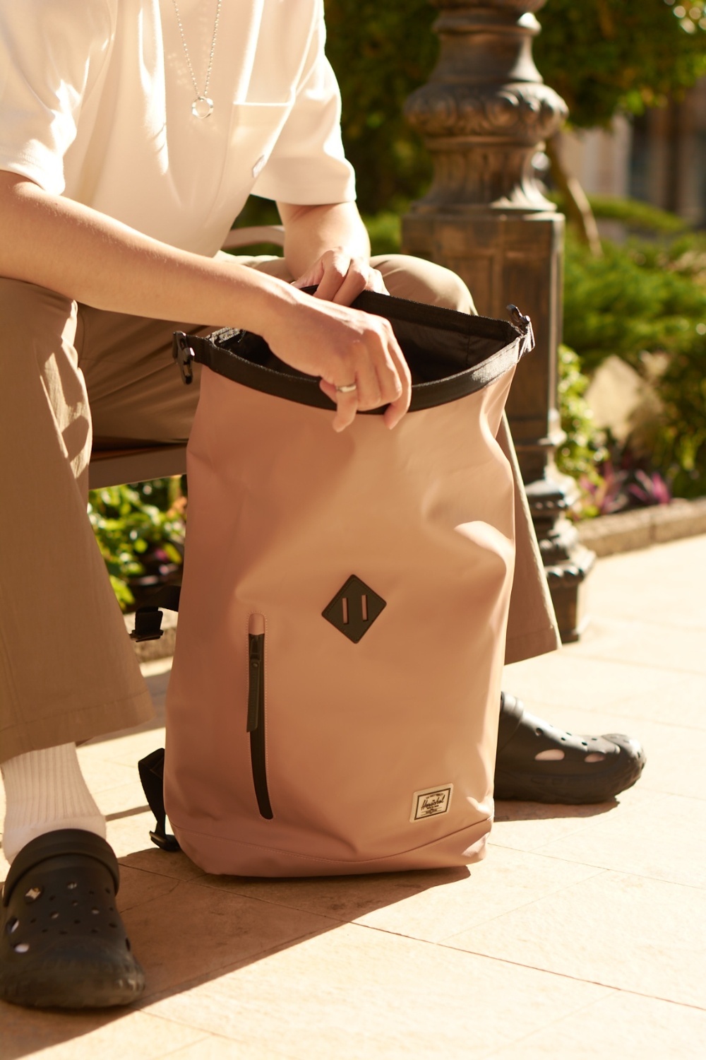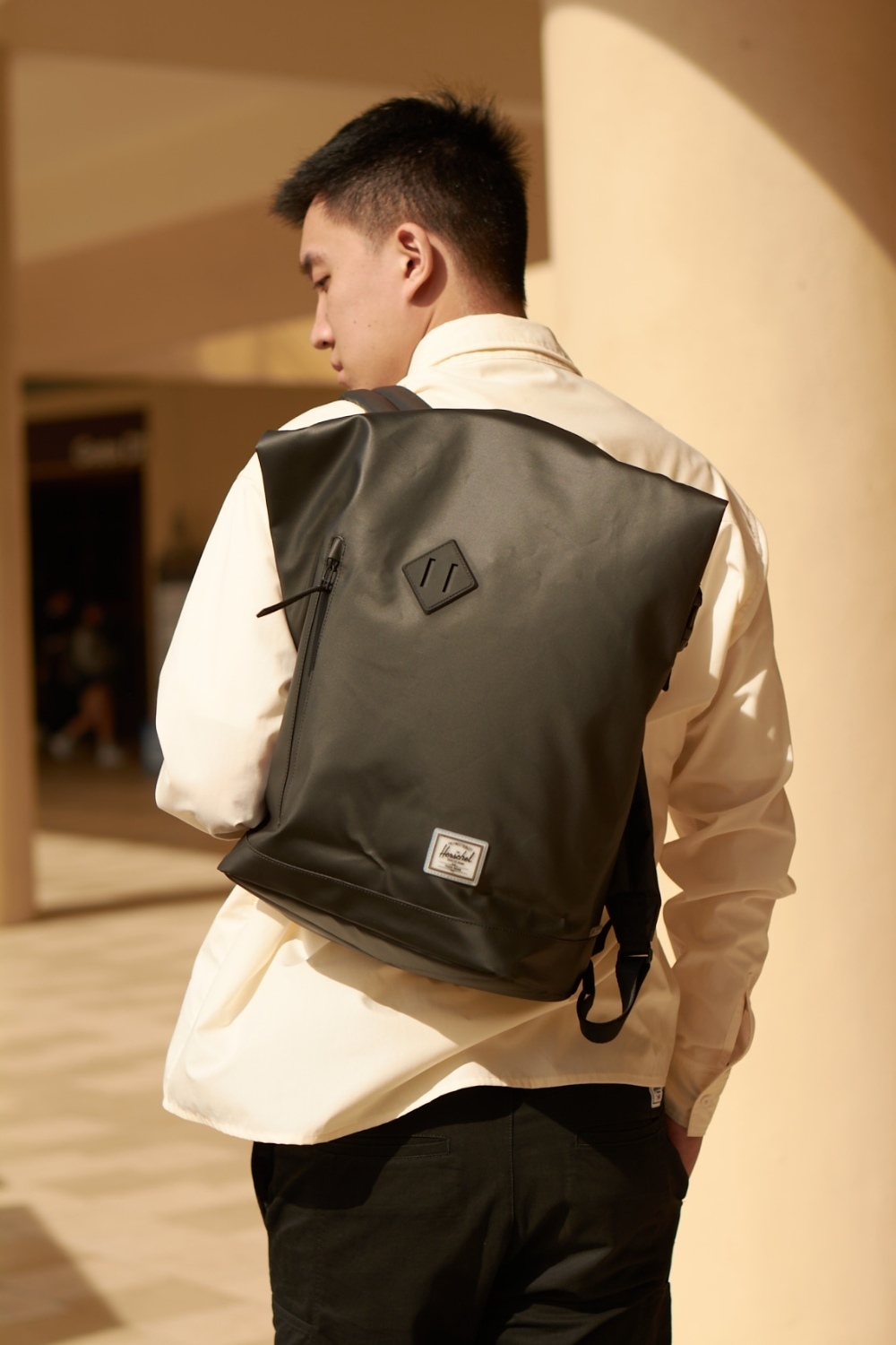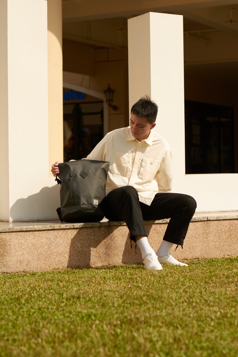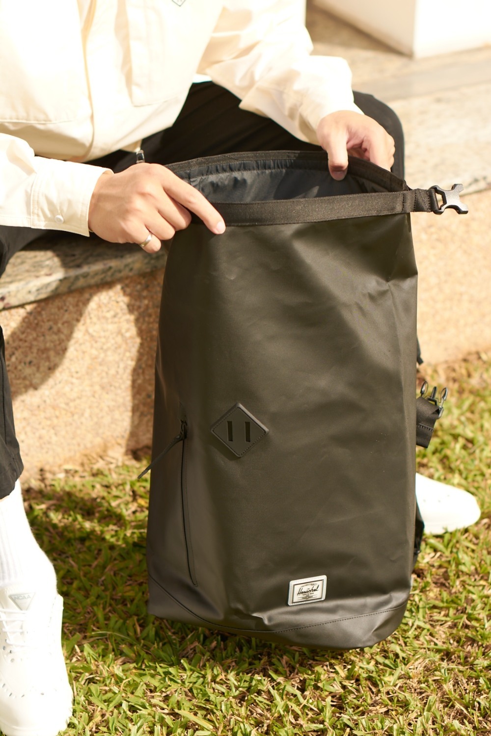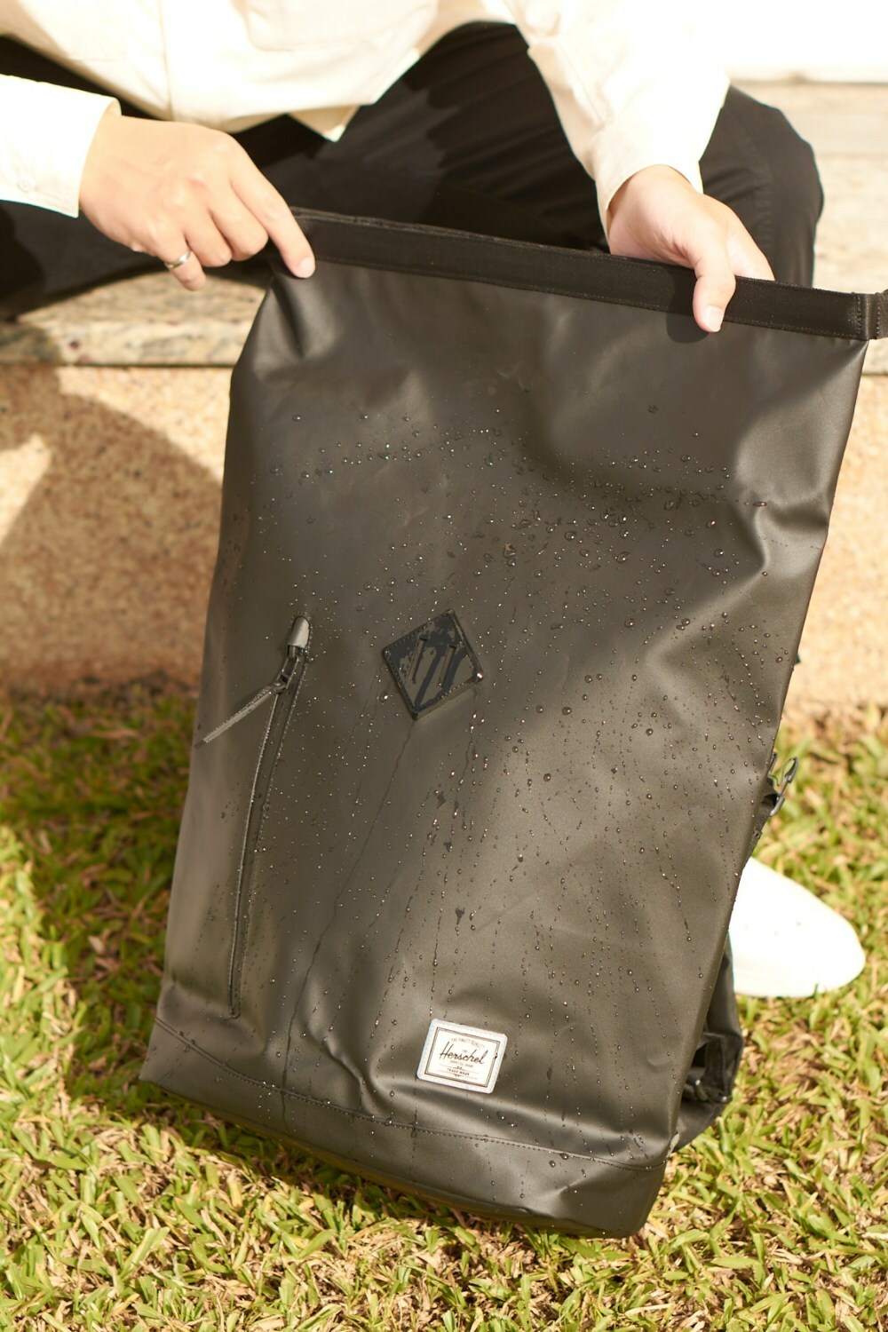 這款防風雨捲頂背包採用再生材質和霧面塗層製成,並具有捲起密封設計,可讓您的必需品在日常旅途中保持乾燥。