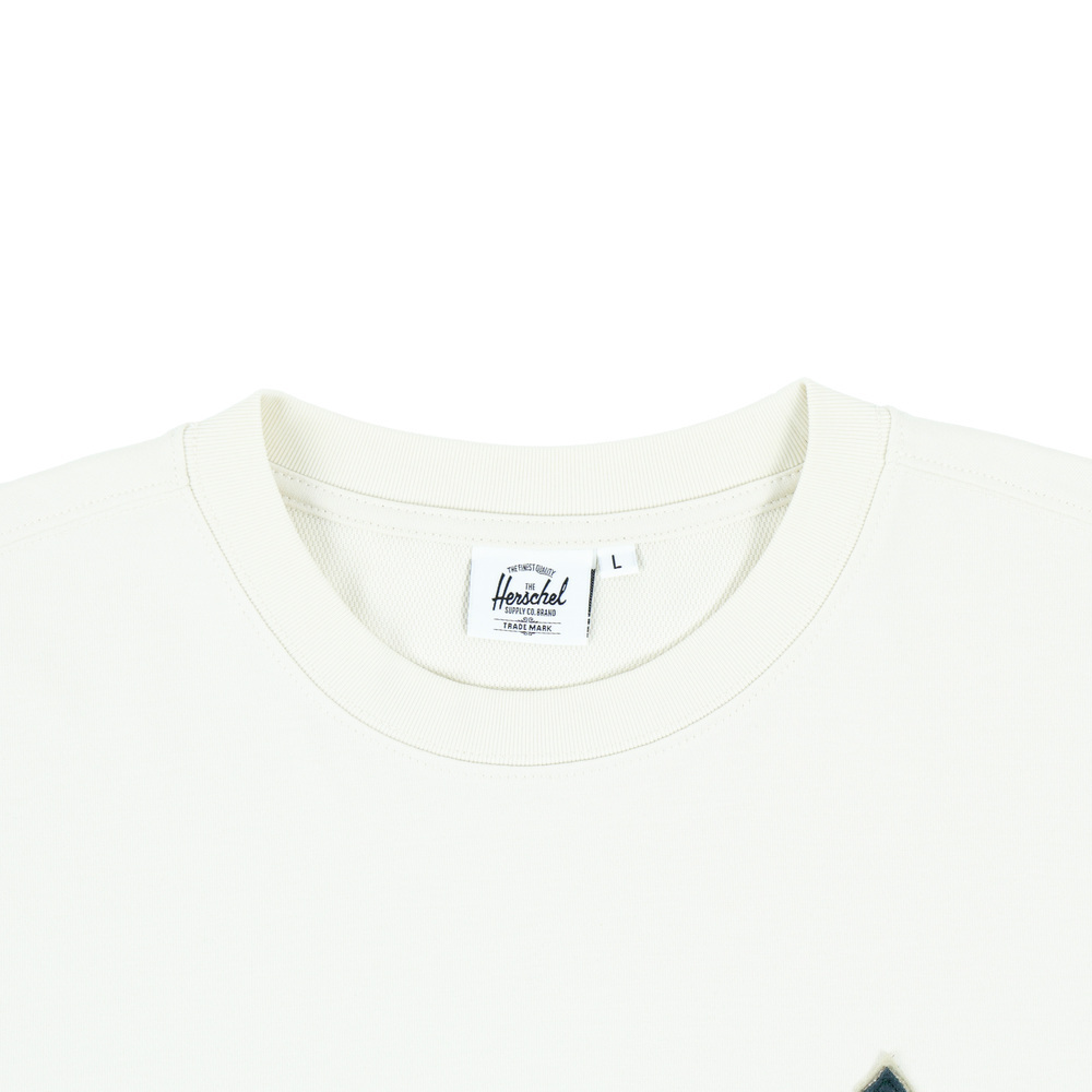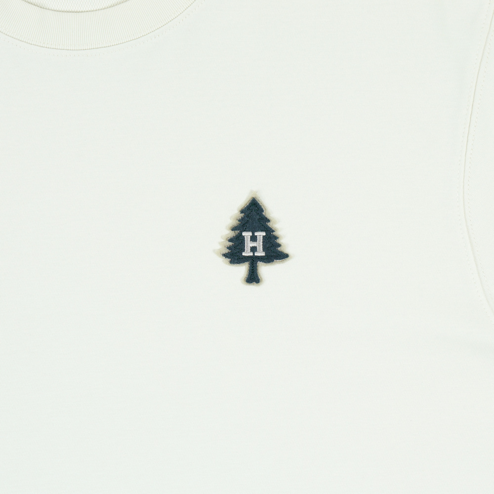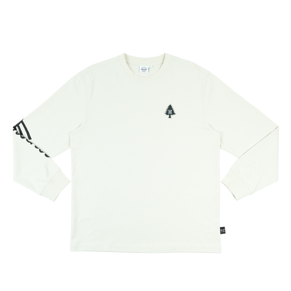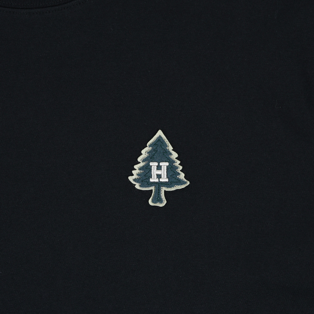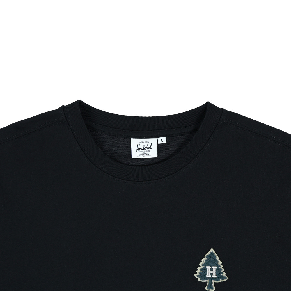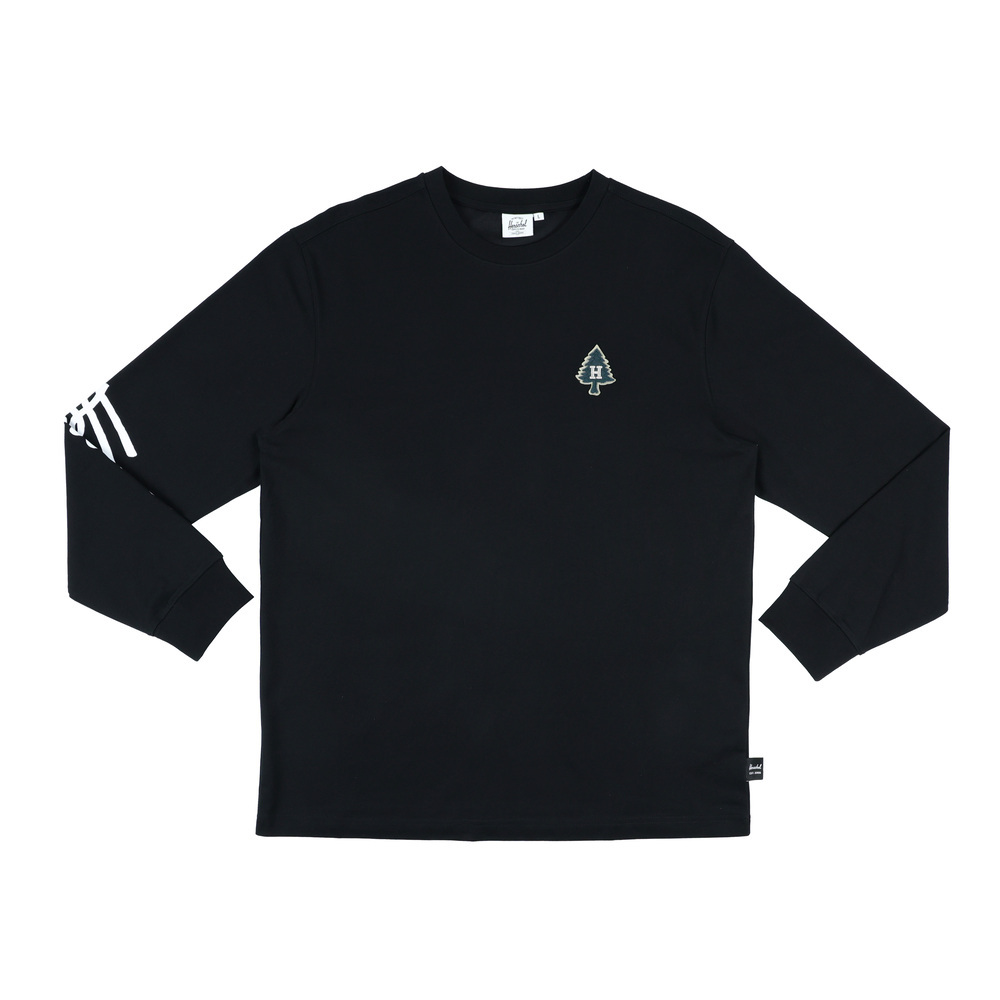 左袖印有低調的 品牌 logo,胸口則繡上一枚象徵自然意象的小樹刺繡章,像是把森林的一角隨身帶著。