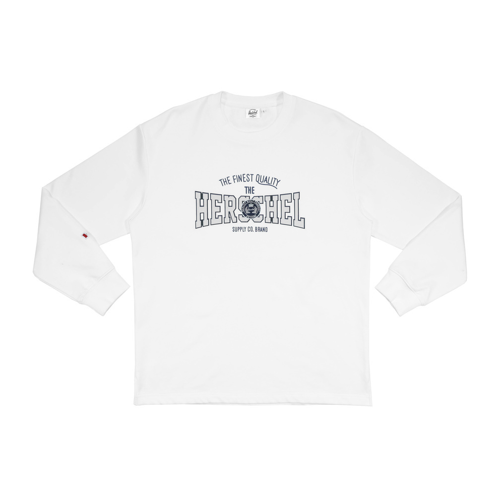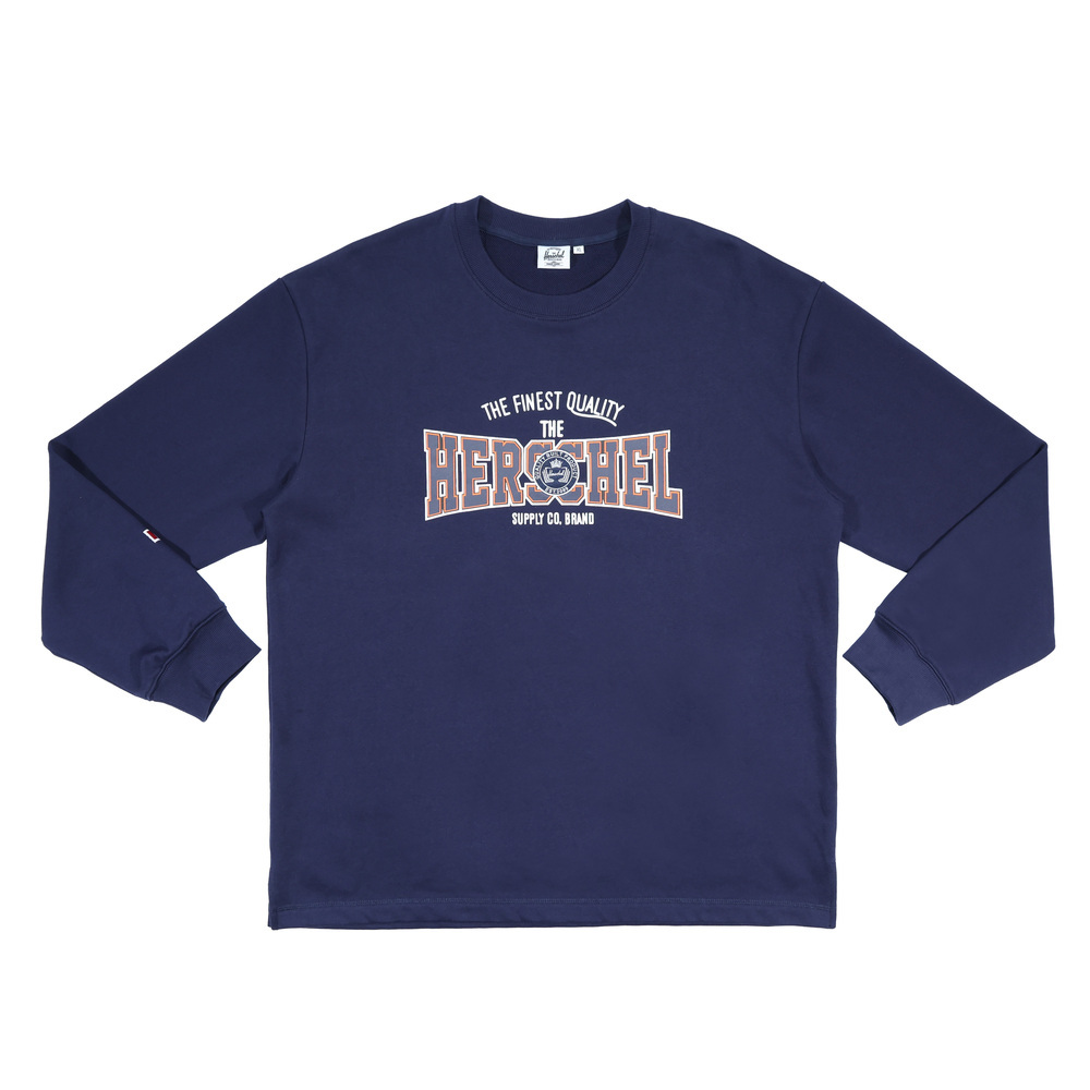 胸前飾以學院風格的字體 logo,帶有視覺張力,為簡約輪廓添上一筆朝氣。