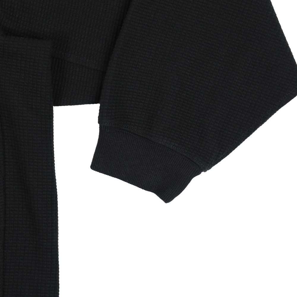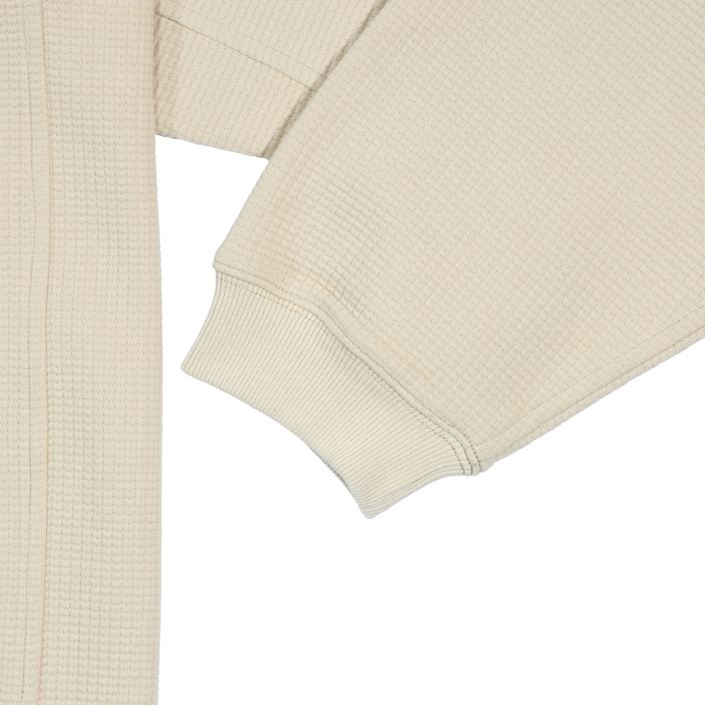 選用立體感十足的華夫格面料,具備良好透氣性與輕量保暖效果,特別適合早秋或山區早晚溫差大時著用。胸前經典繡花 logo,細節低調卻不失態度。寬鬆版型搭配自然落肩剪裁,無論單穿或疊搭外套都輕鬆有型,是戶外行程與日常生活之間的完美橋梁。