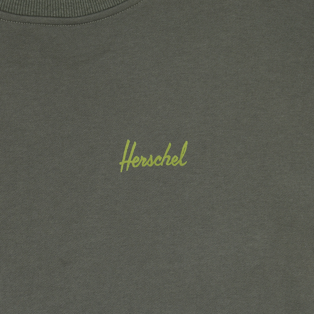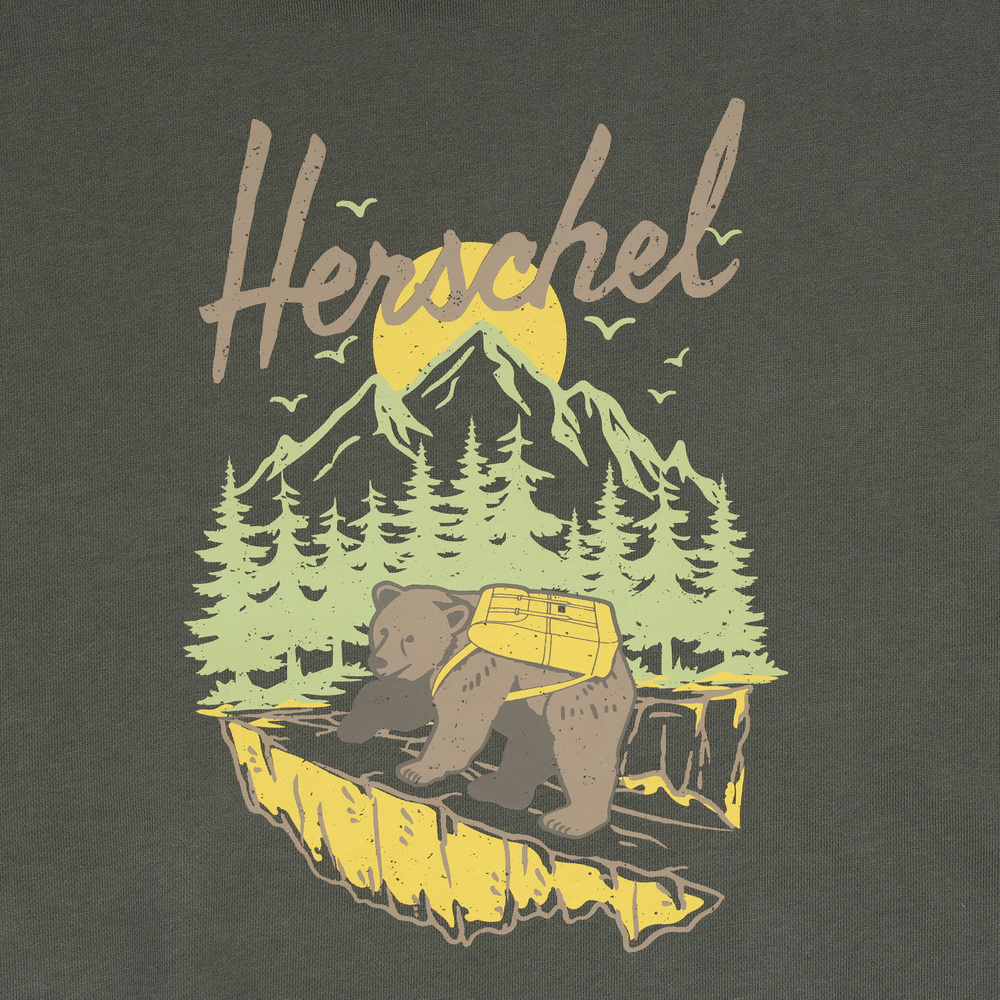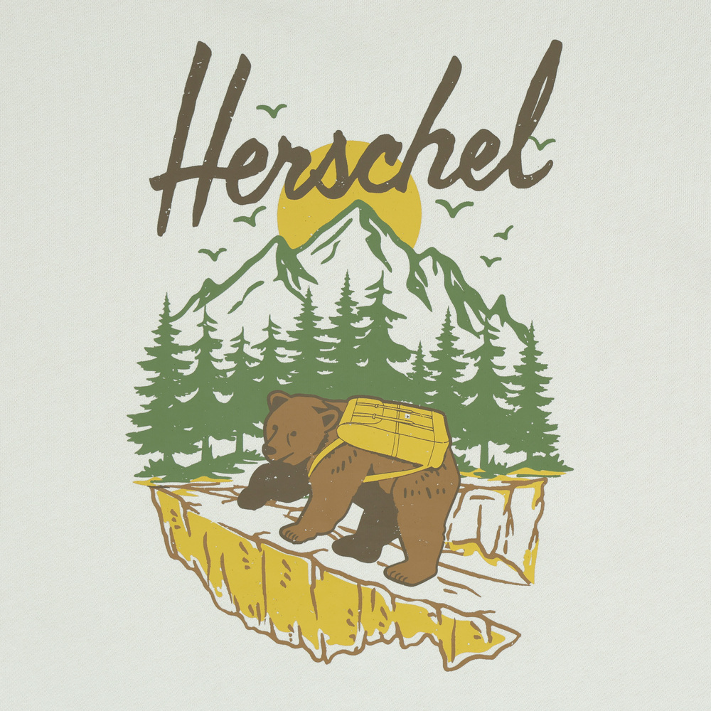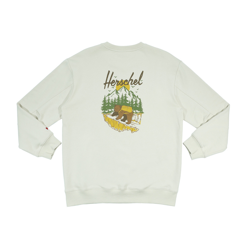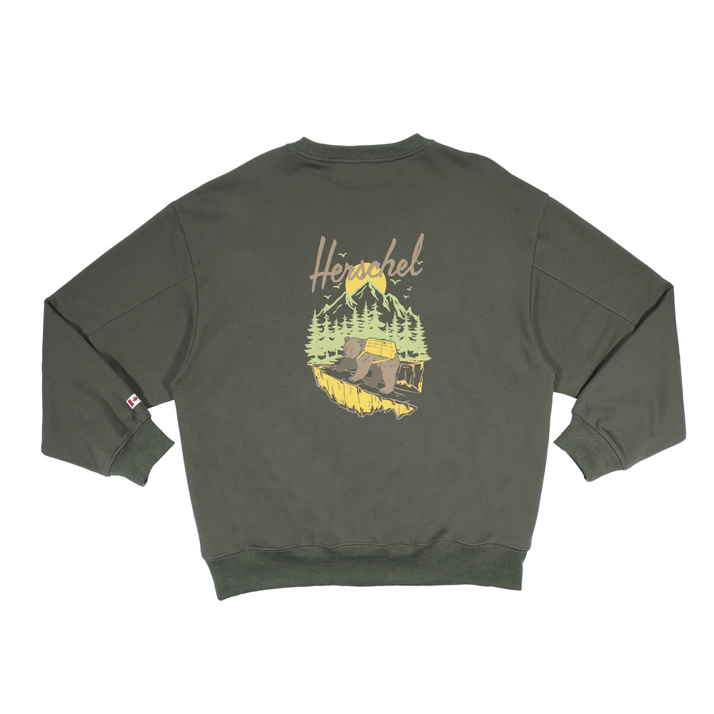採用柔軟舒適面料,這款圓領衛衣以大自然為靈感,後背印有層層疊疊的山脈線條與生動的熊形象,象徵探索與力量。