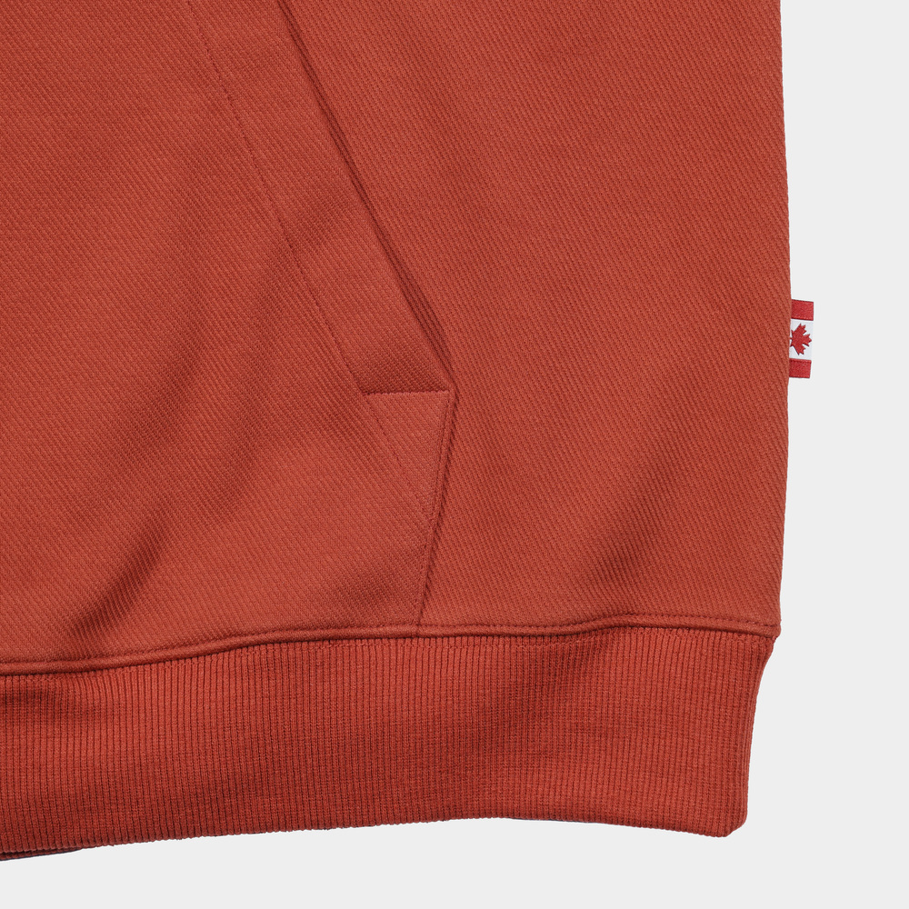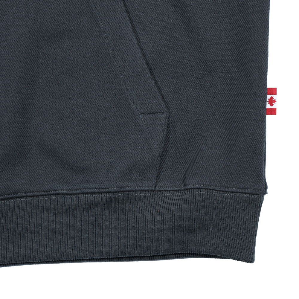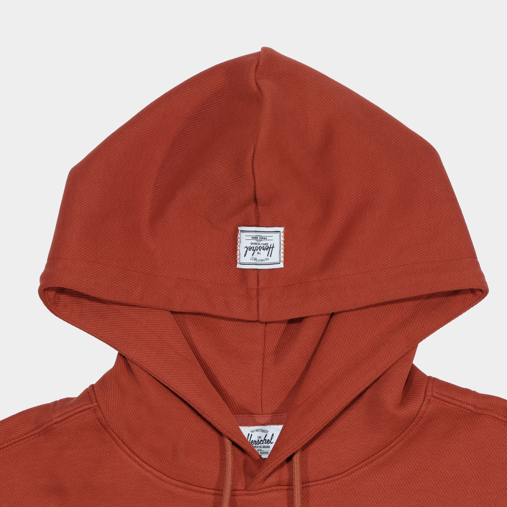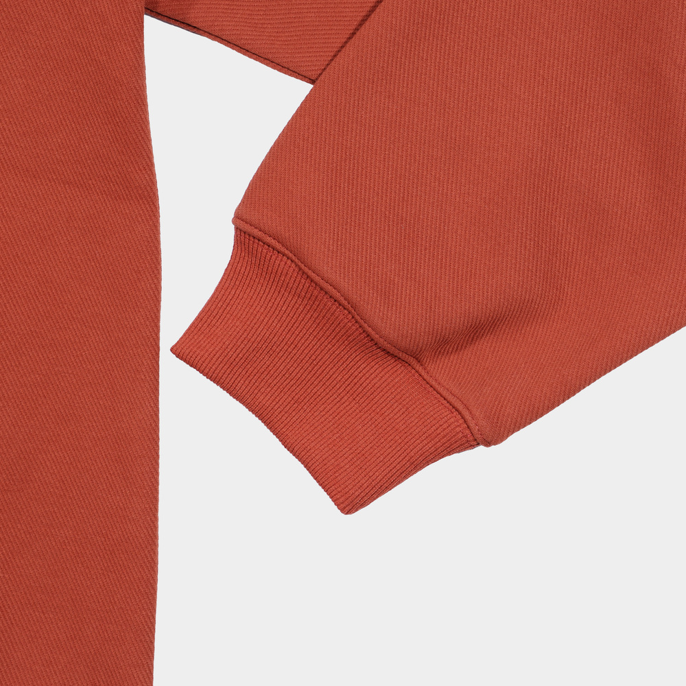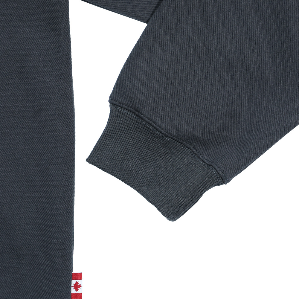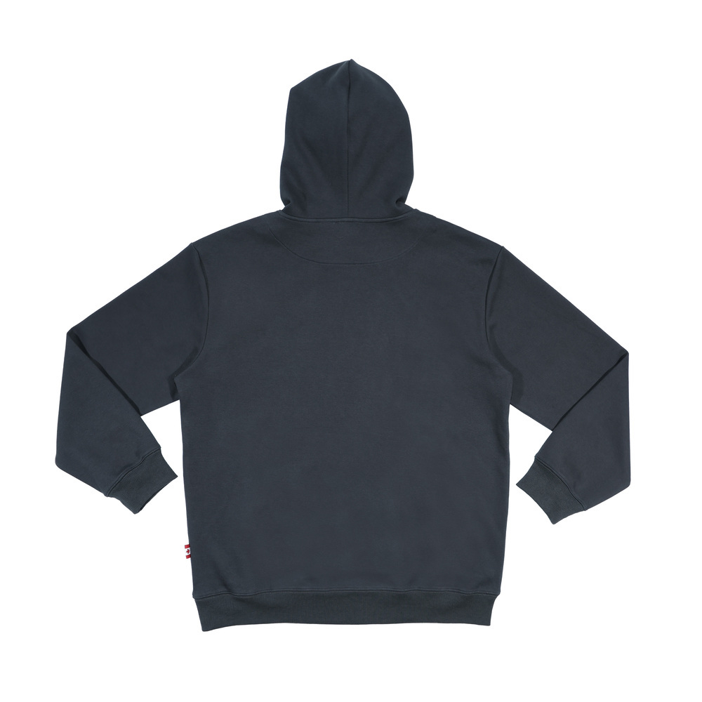 這款帽T選用斜紋布製成,表面帶有立體的肌理,兼顧實穿與質感。