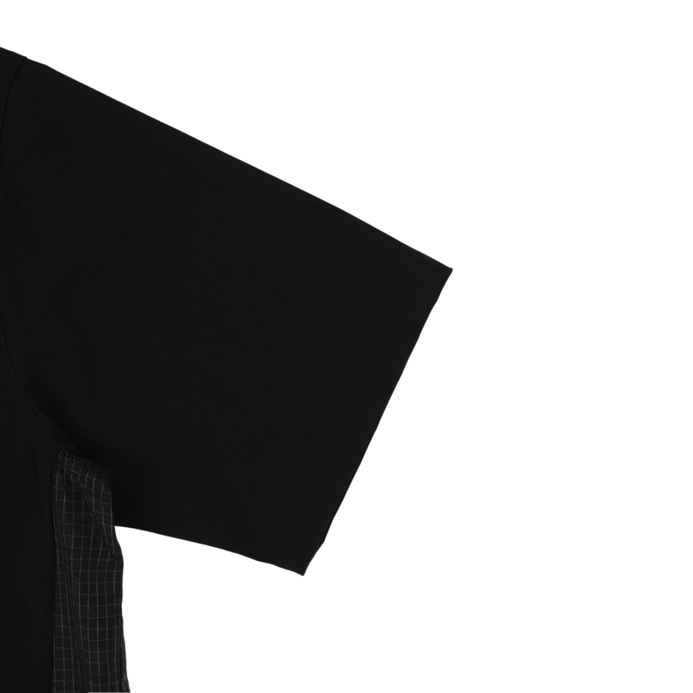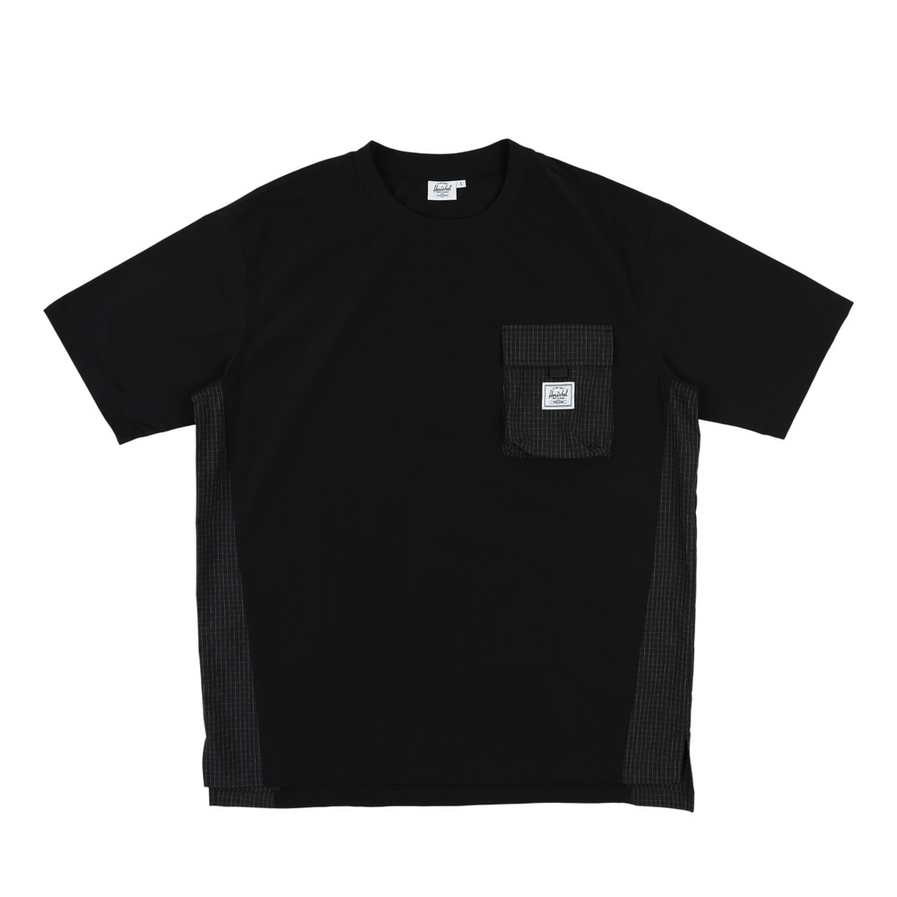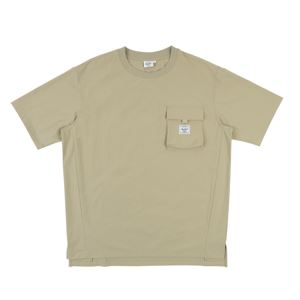 此款中性 T-shirt 採用風衣感機能面料,具彈性且穿著輕盈,兼顧活動度與造型感。胸前配置立體口袋設計,為整體增添結構層次。黑色款式於口袋與側邊拼接處加入格紋細節,低調呈現設計亮點;卡其色款則以全卡其色呈現,風格簡潔俐落。