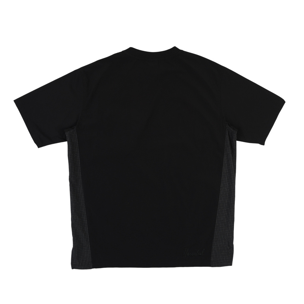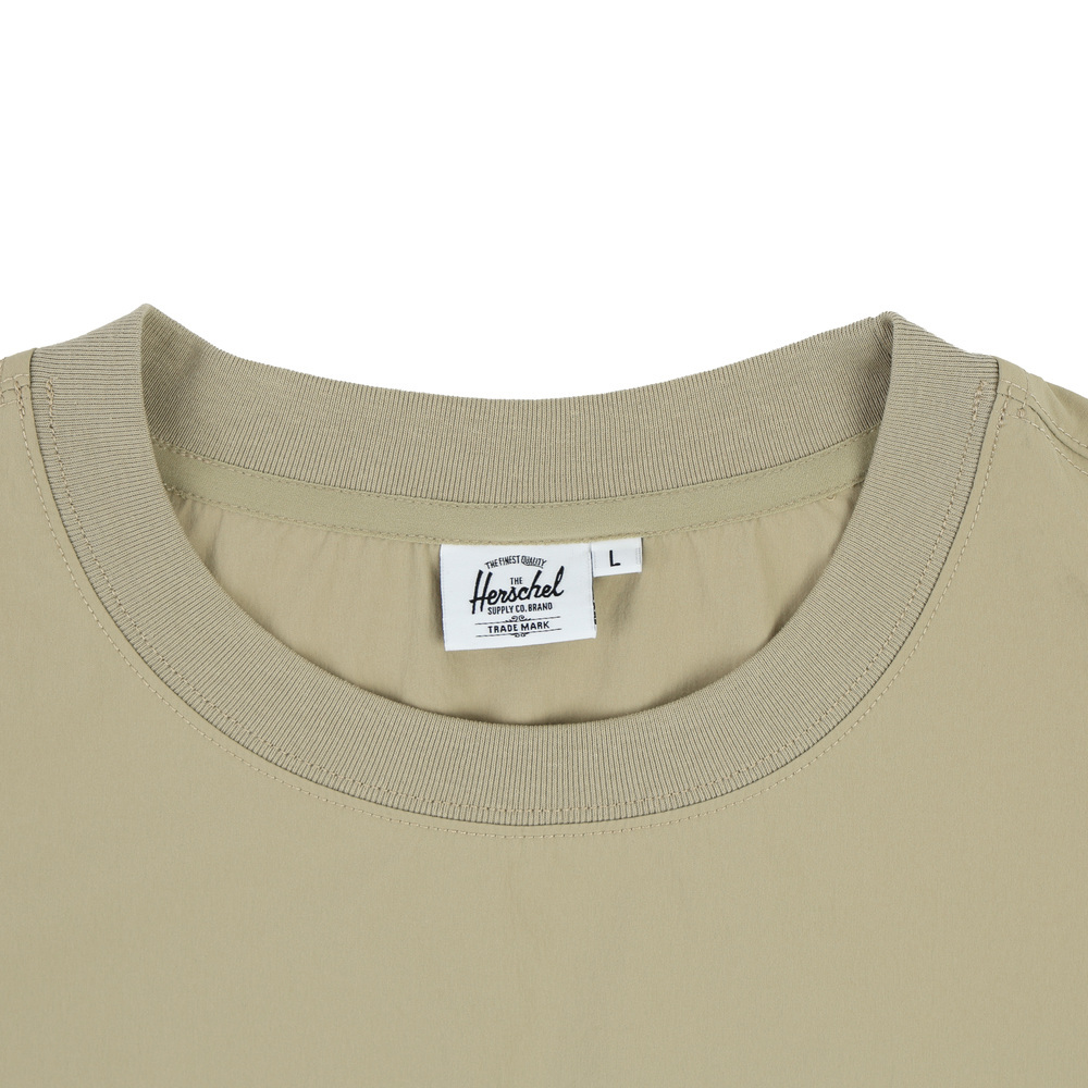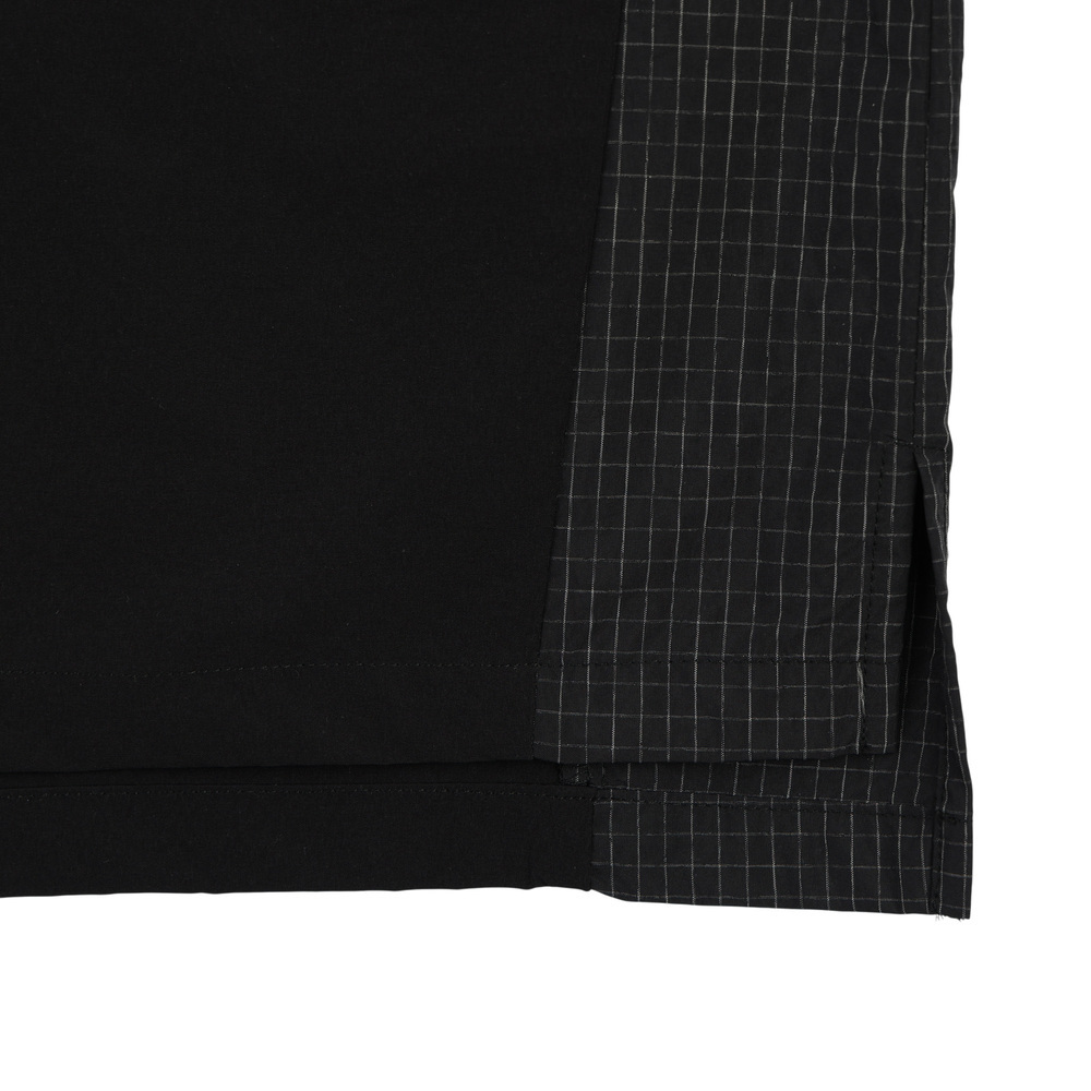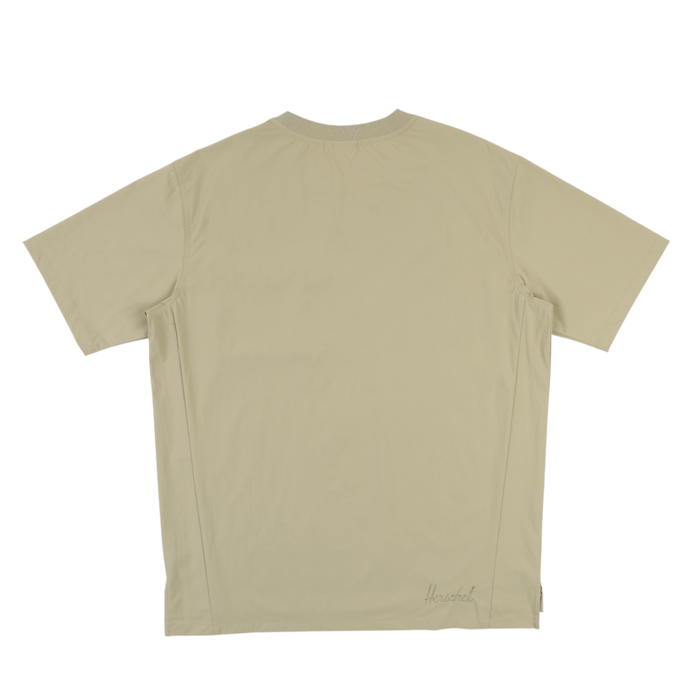 此款中性 T-shirt 採用風衣感機能面料,具彈性且穿著輕盈,兼顧活動度與造型感。胸前配置立體口袋設計,為整體增添結構層次。黑色款式於口袋與側邊拼接處加入格紋細節,低調呈現設計亮點;卡其色款則以全卡其色呈現,風格簡潔俐落。