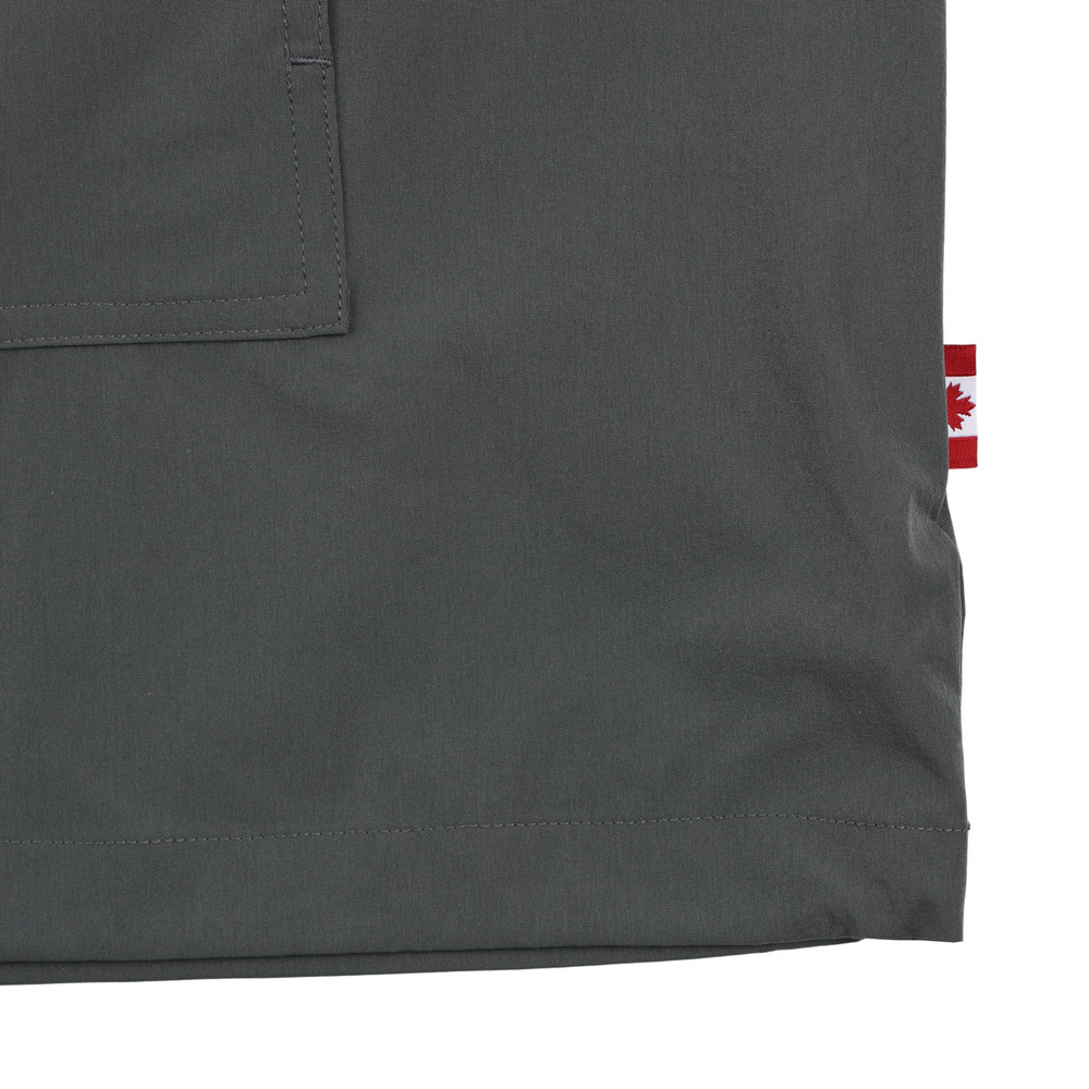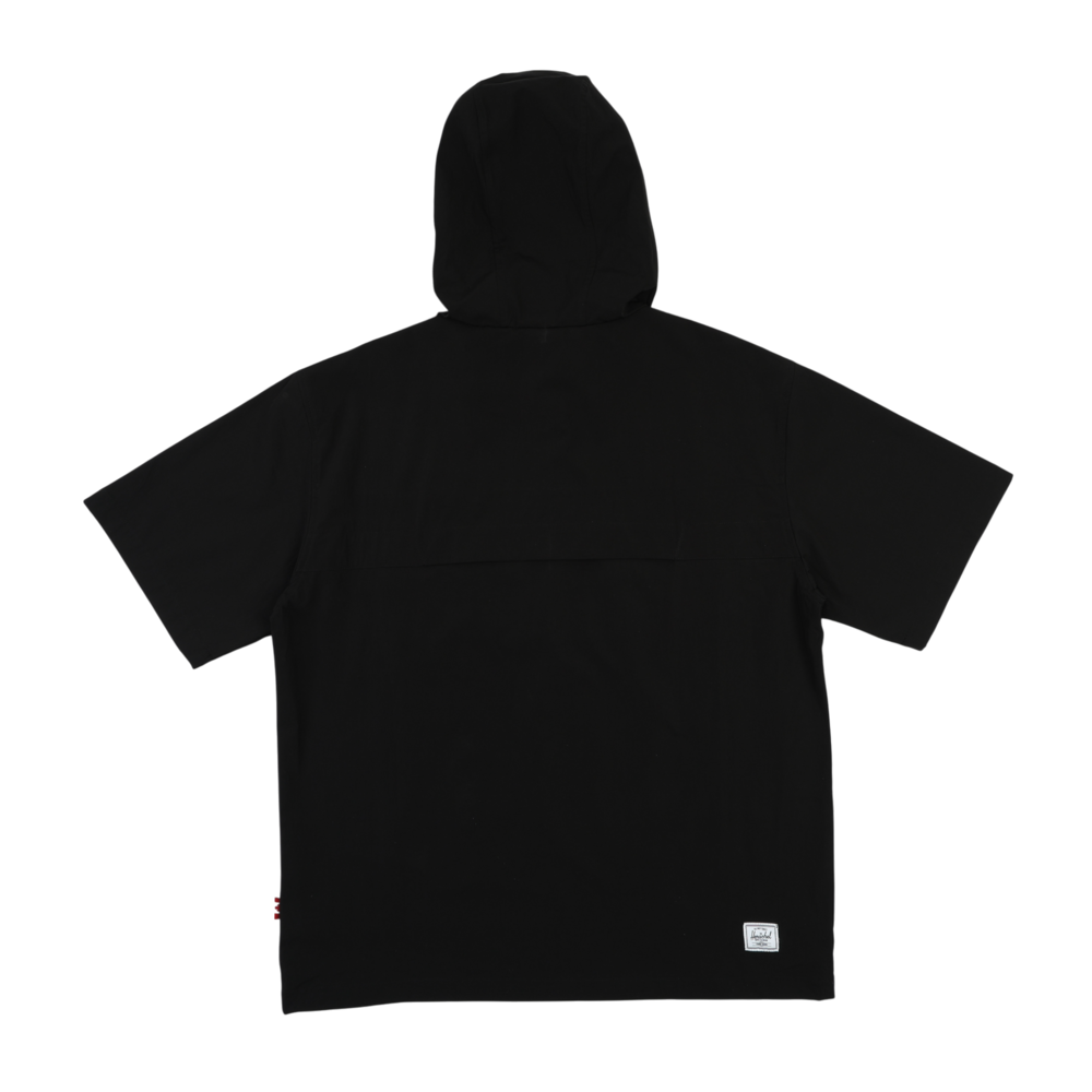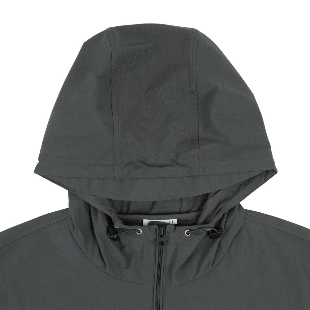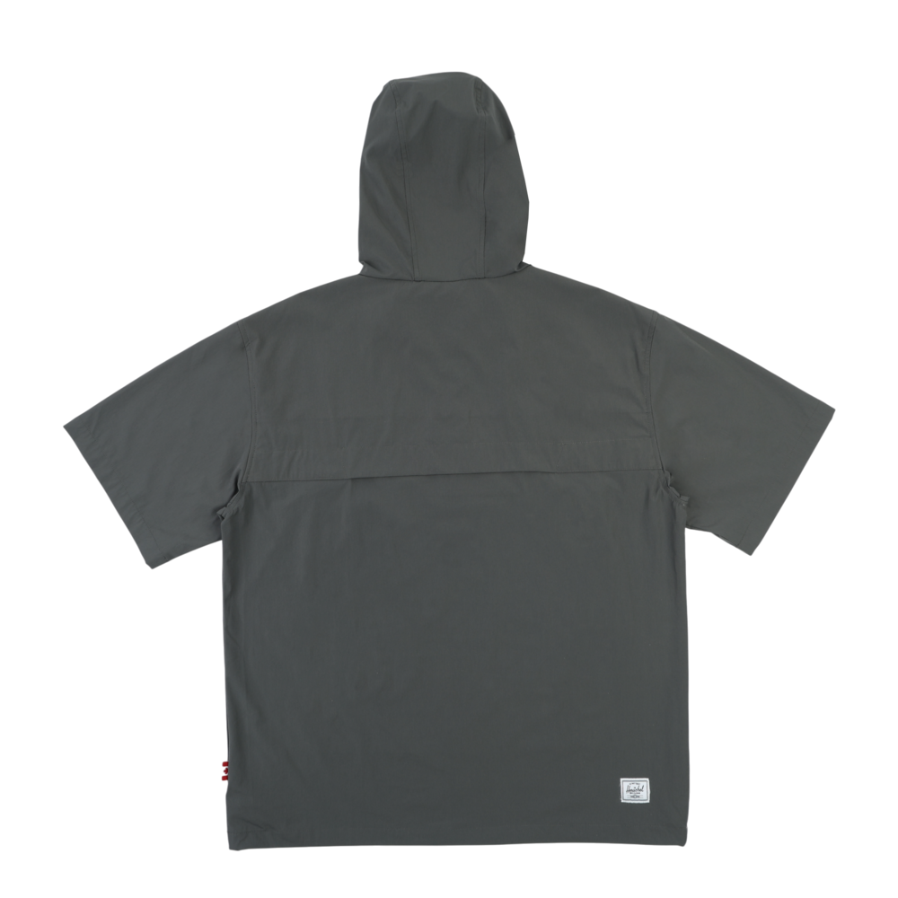 此款中性連帽上衣採用風衣布料製作,輕量卻具機能性,搭配半開襟設計,提供多樣穿搭變化。多口袋配置提升實用性,同時強化整體造型感;後背擋風片下方加入網布通風設計,在活動時保持良好透氣性。胸前點綴經典LOGO標誌