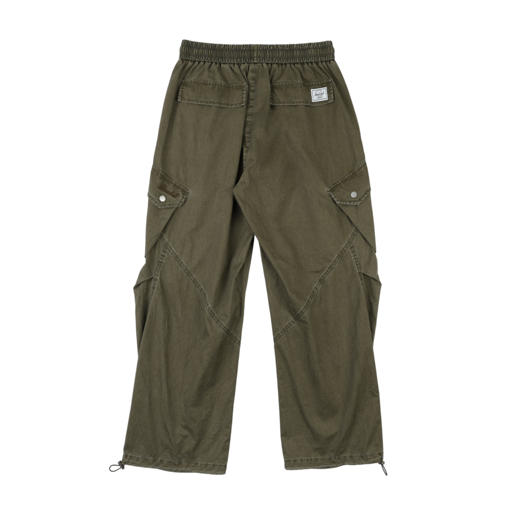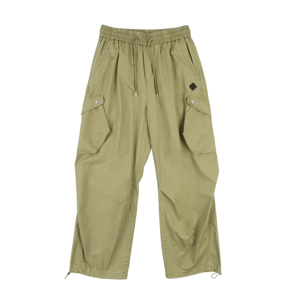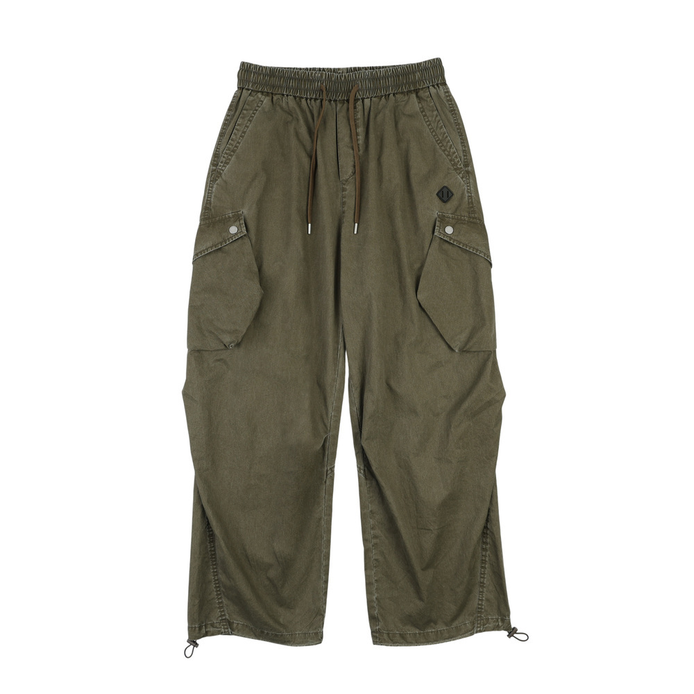 此款中性長褲具有水洗效果,呈現自然質感與耐看色澤。腰頭為鬆緊帶搭配綁繩設計,穿著時可輕鬆調節;寬鬆版型有型不鬆垮,褲口設有抽繩,可依需求調整輪廓。