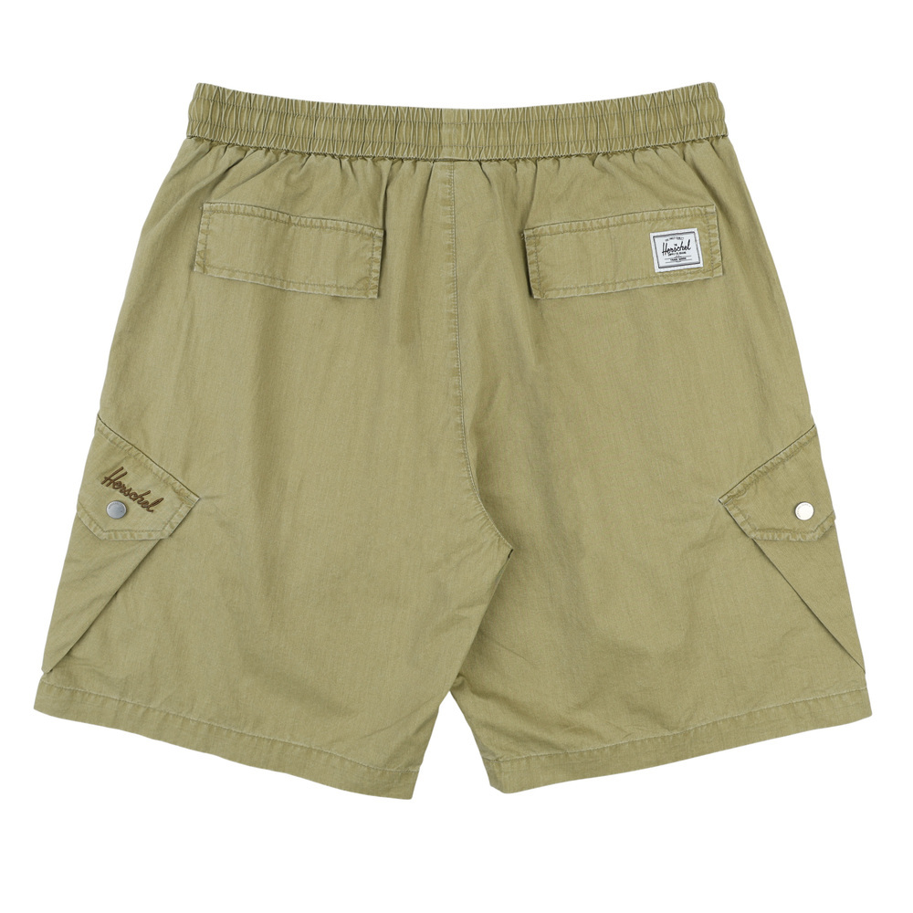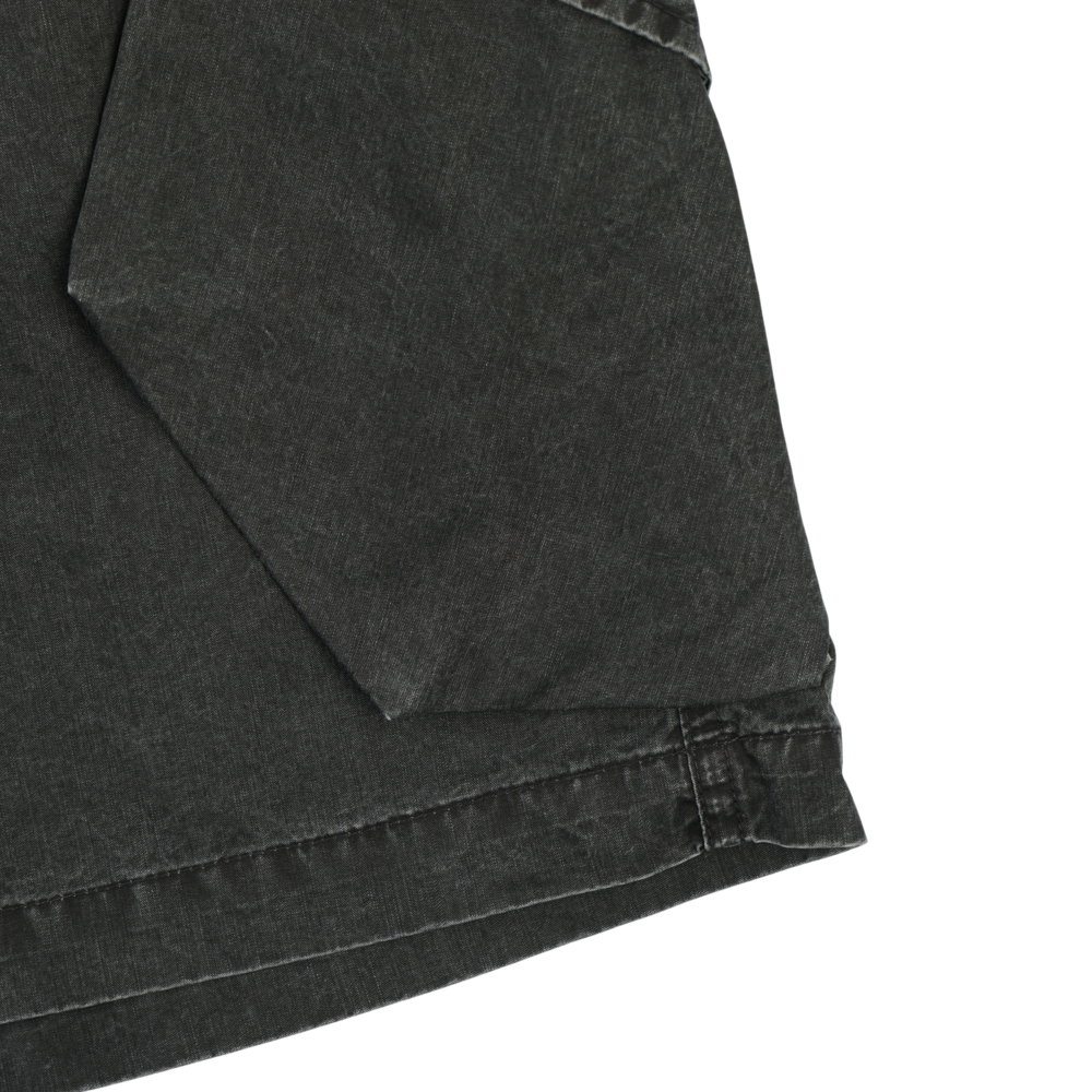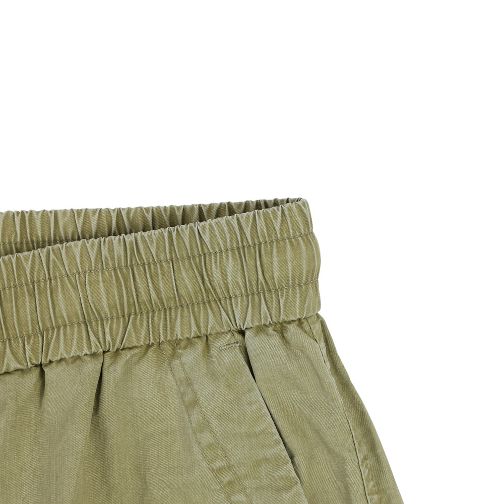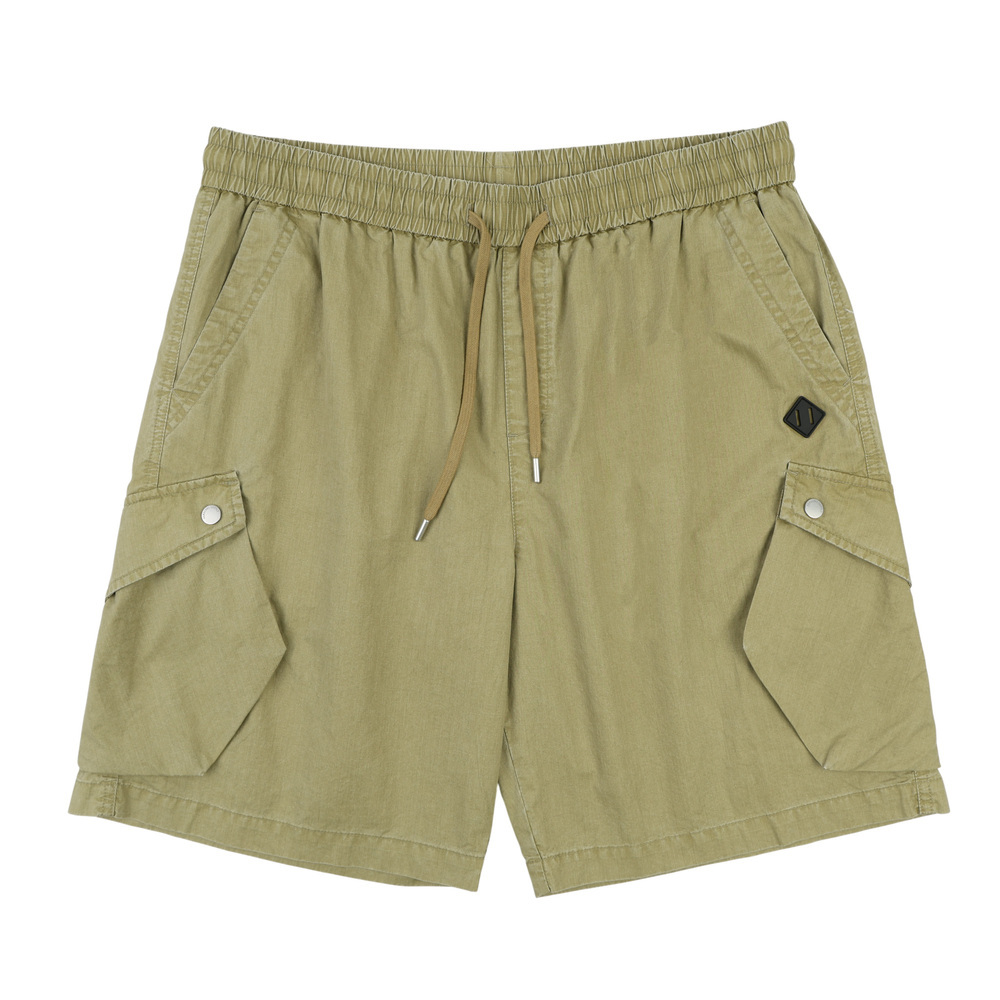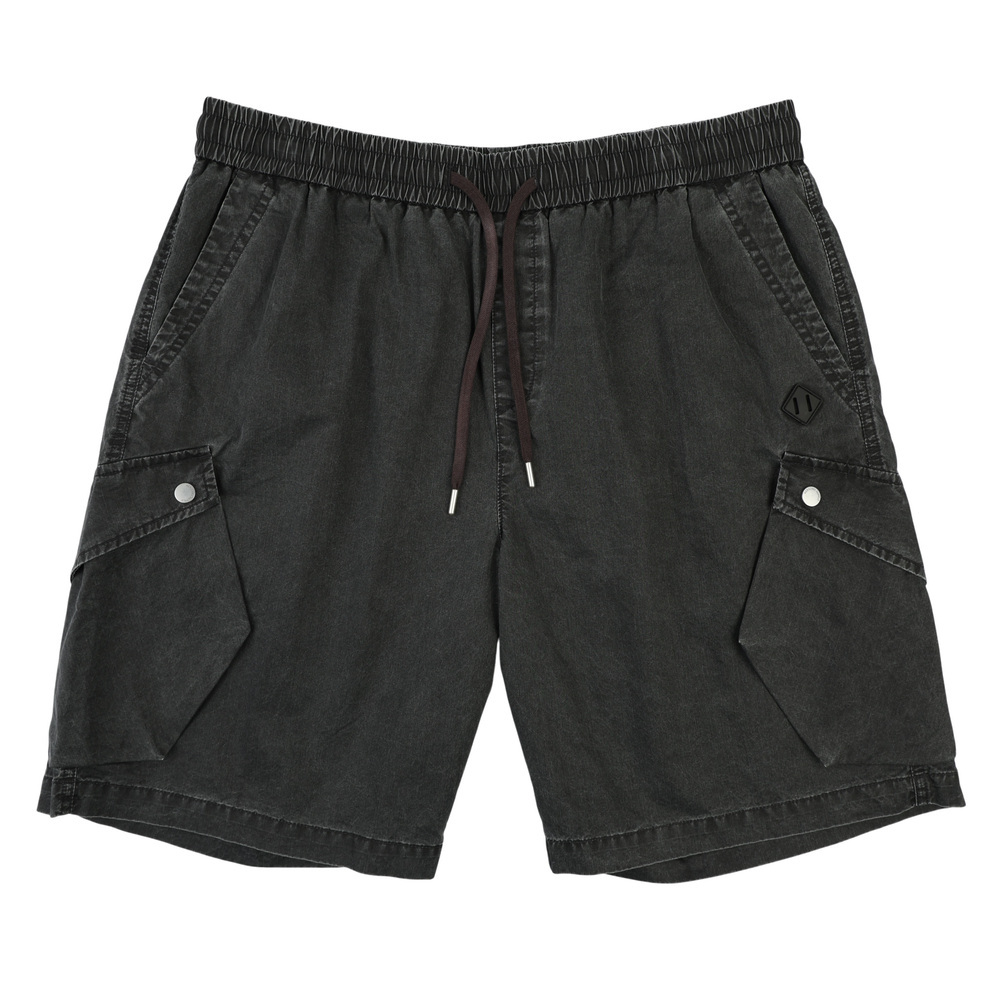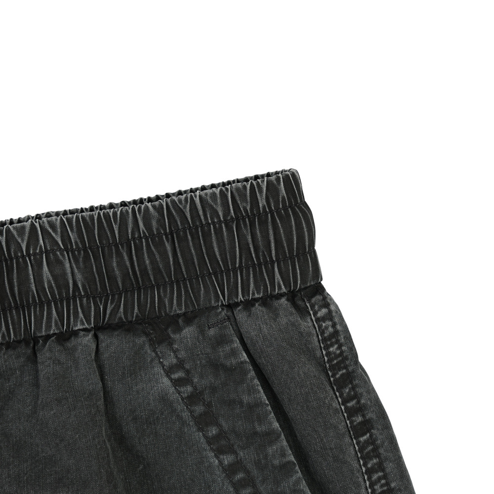 此款中性短褲採用水洗布料製作,呈現自然隨性的質感。腰頭為鬆緊帶搭配綁繩設計,穿著舒適、調整方便;整體版型寬鬆有型,搭配個性剪接細節,提升整體造型層次。