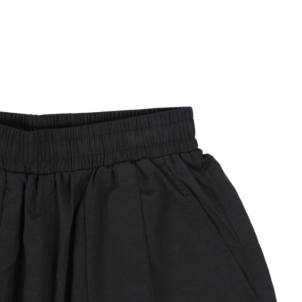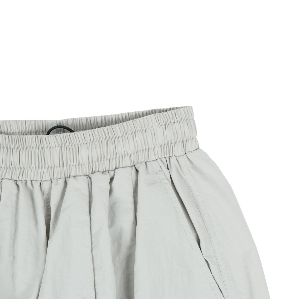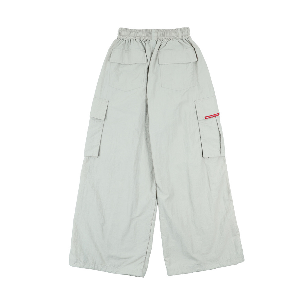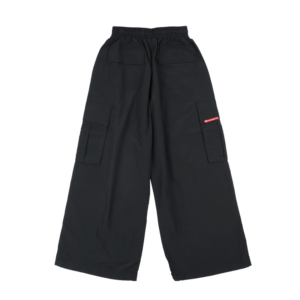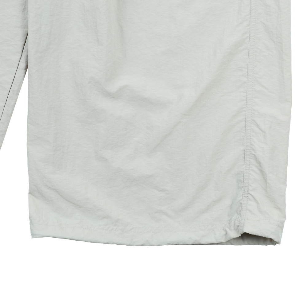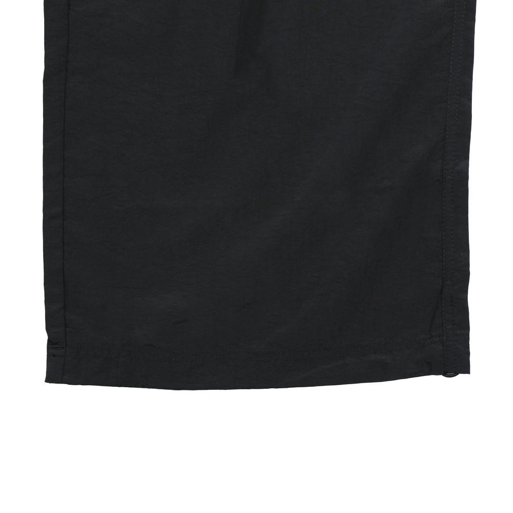 採用輕薄風衣布料,結合機能口袋及抽繩。流行寬口版型修飾腿部線條,以及品牌識別細節,營造街頭潮流的元素。