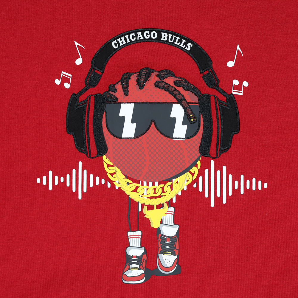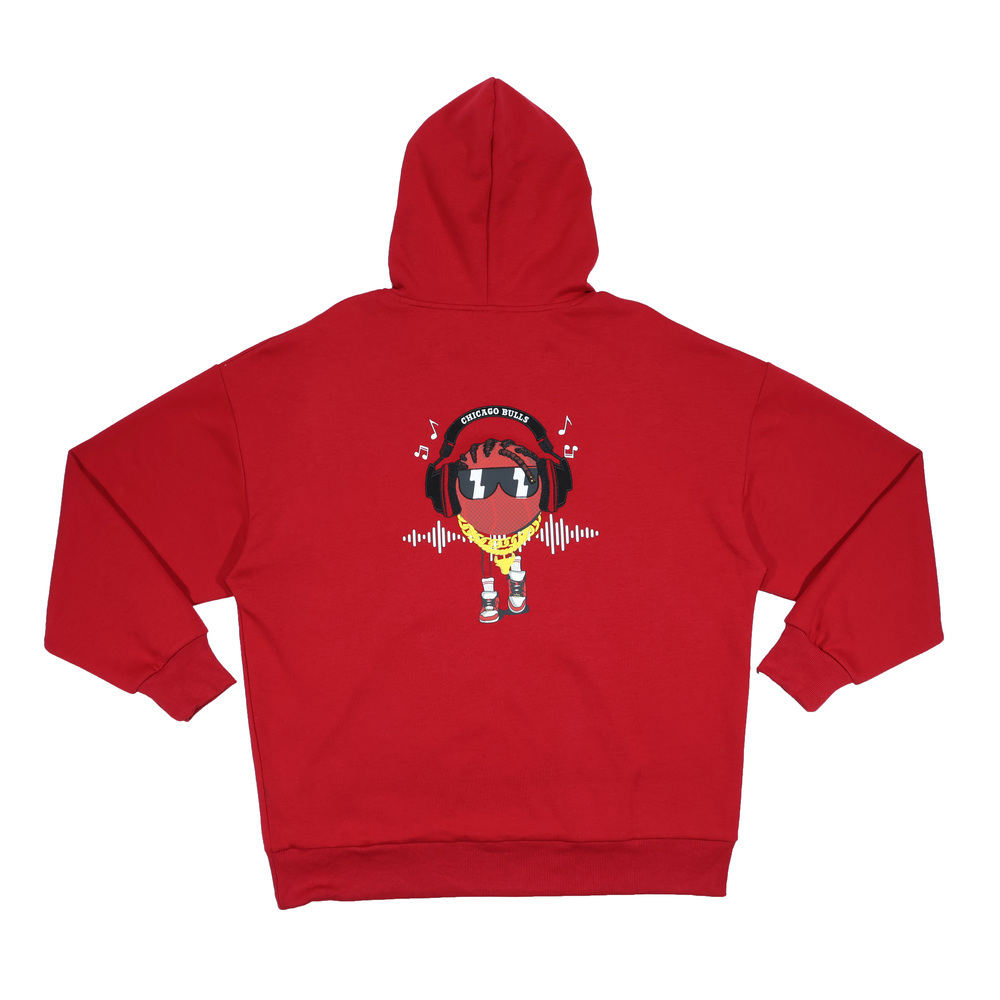 胸口與背後以擬人化籃球角色呈現,搭配大面積貼布繡設計,滿滿嘻哈街頭風格。