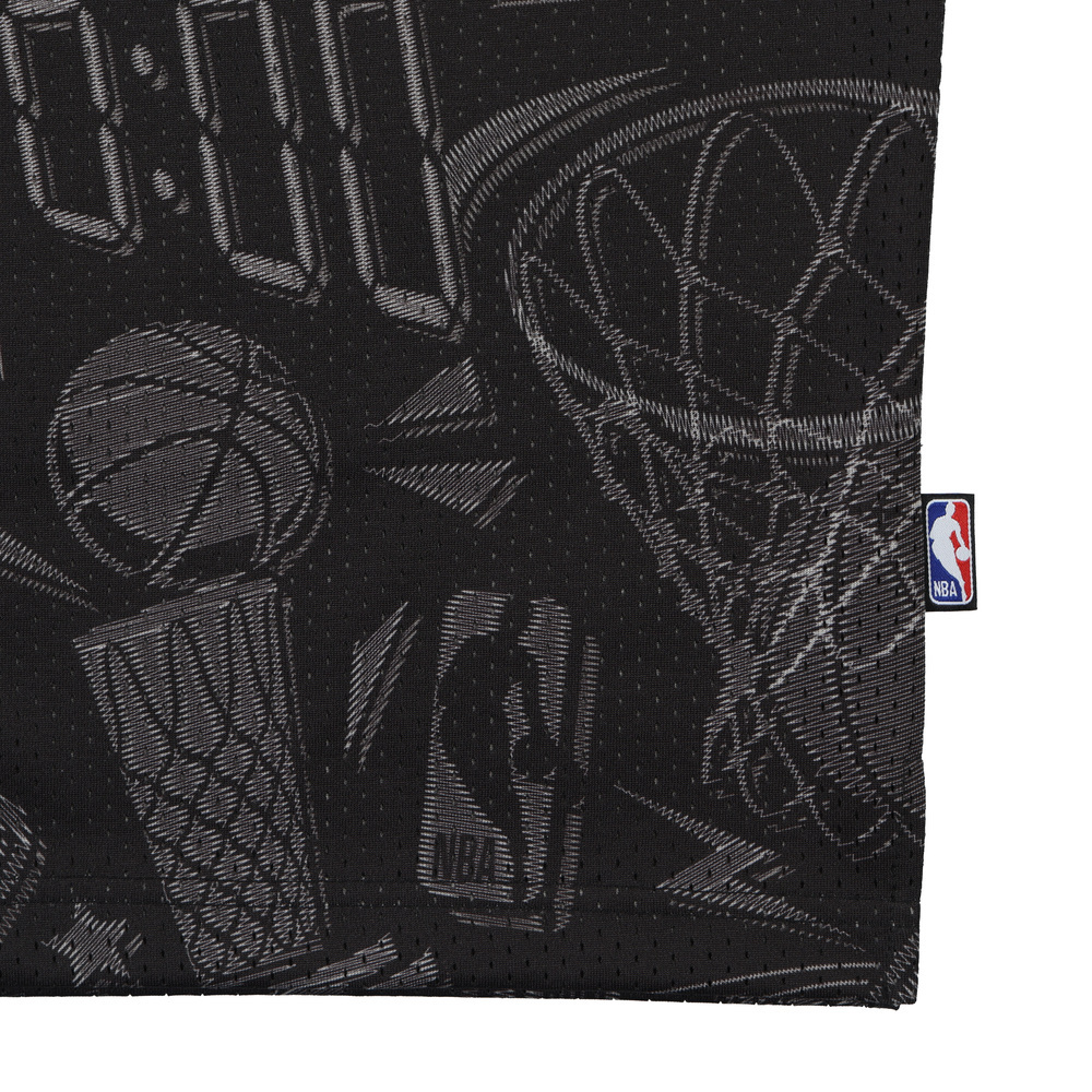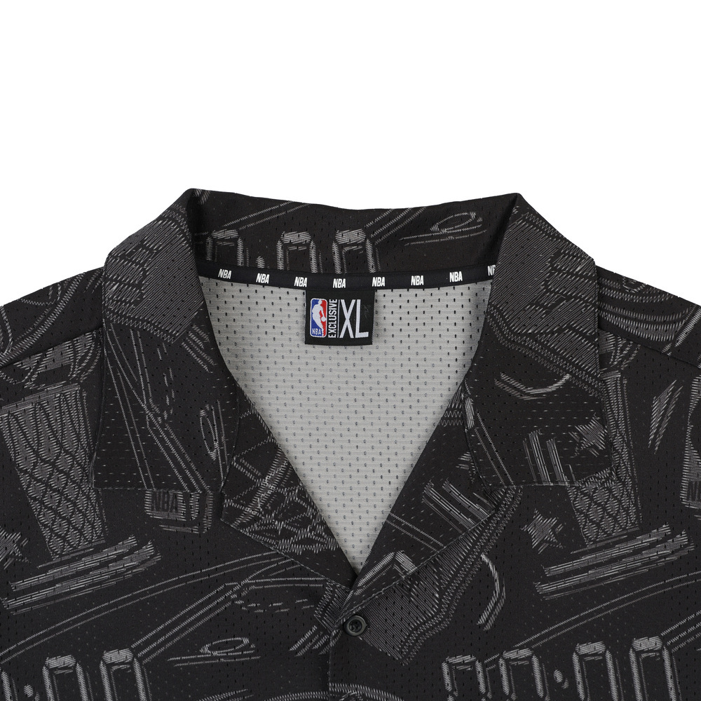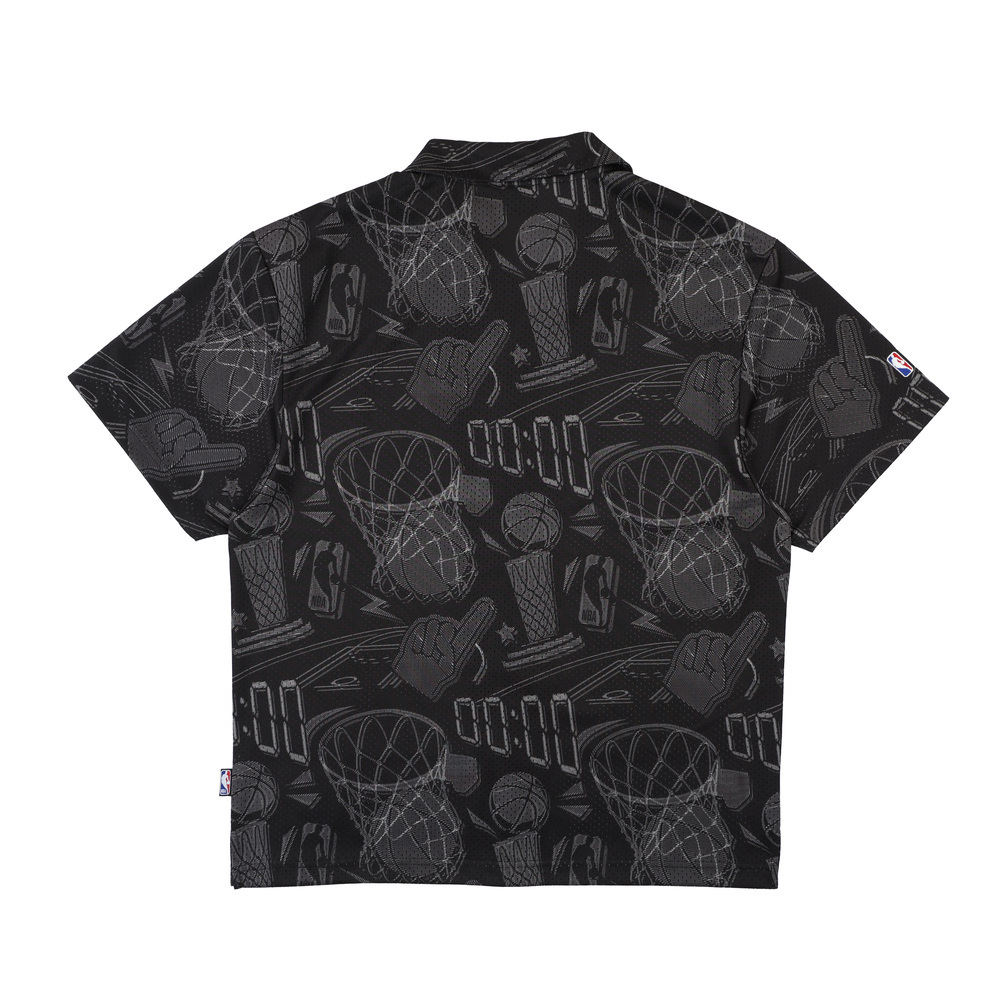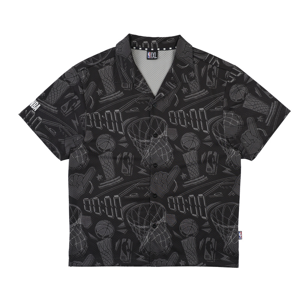 以籃球元素構成的滿版襯衫,時尚的開襟造型結合運動感的網眼面料,架構出街頭輕時尚風格。