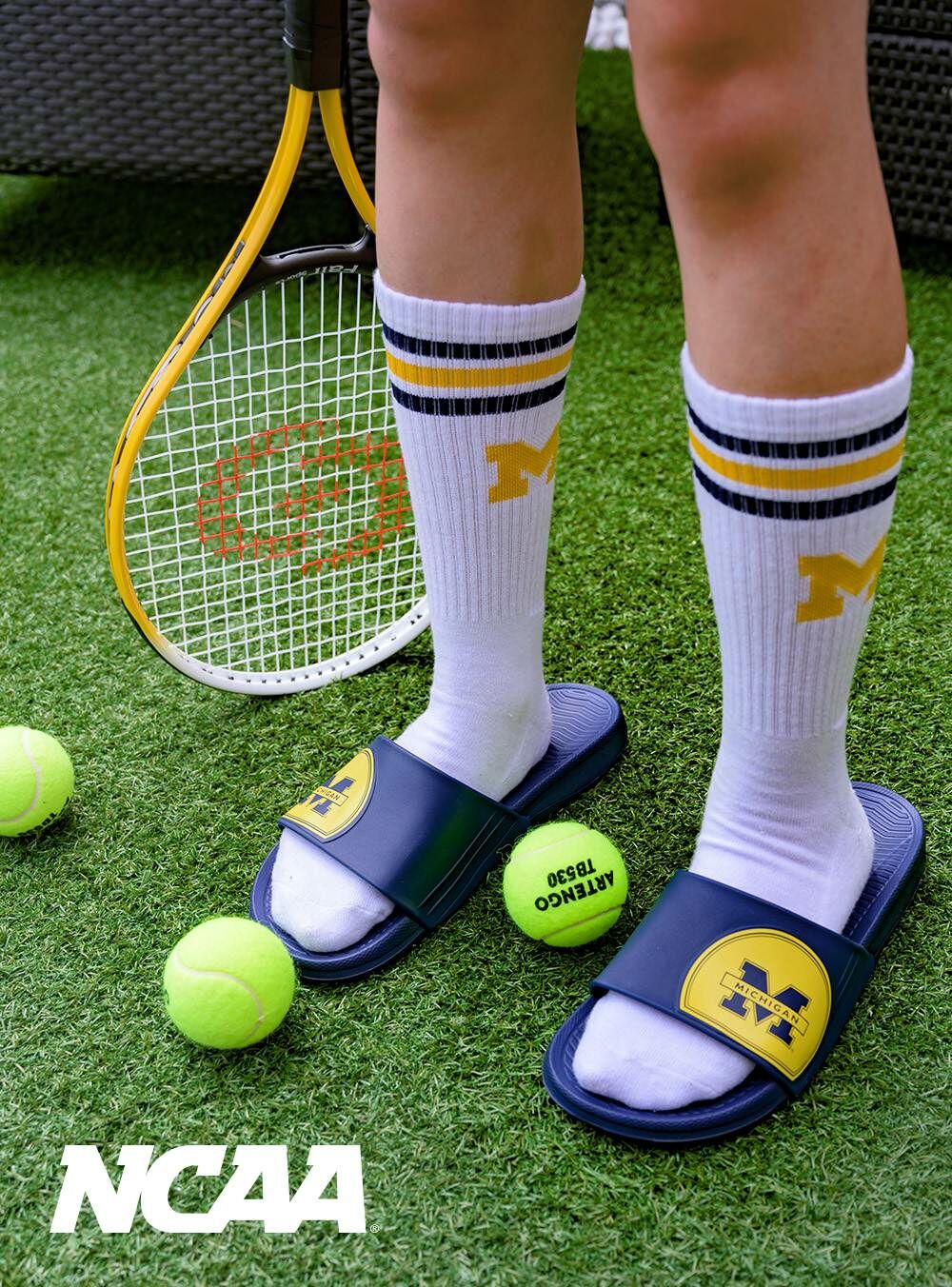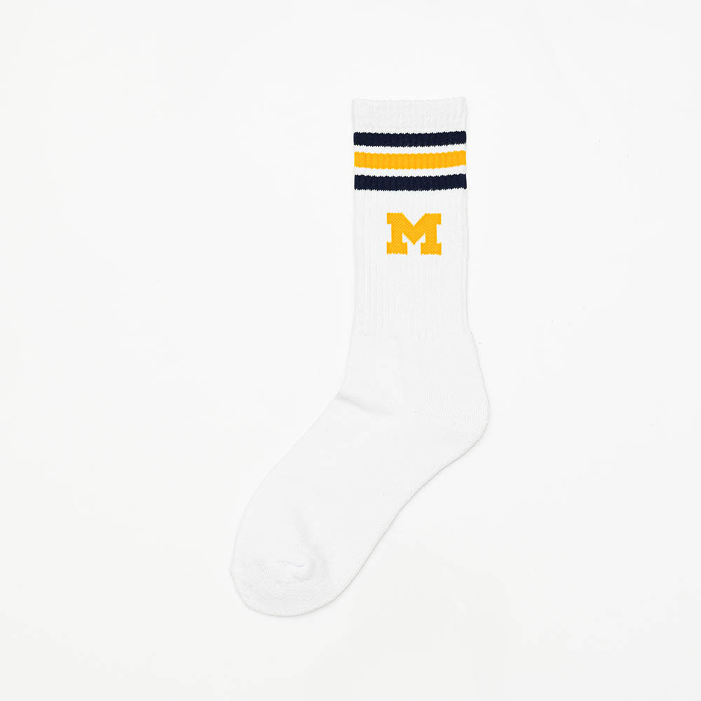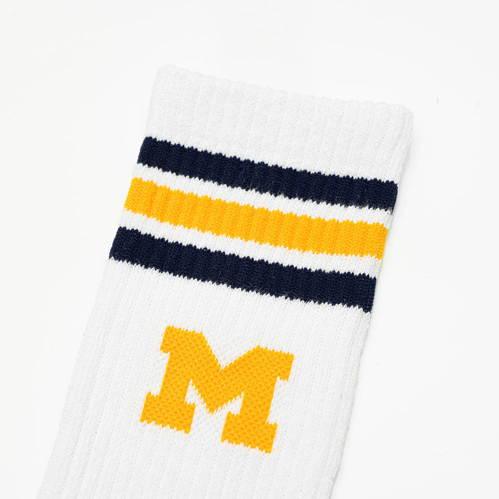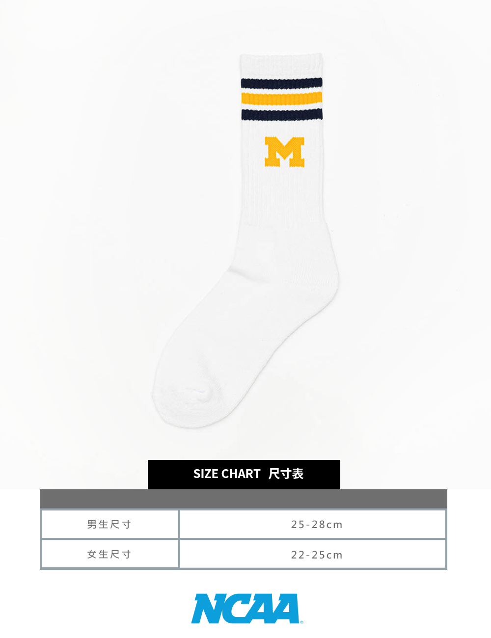 一款專為喜愛大學運動隊的男性設計的長襪,印有各大學隊伍的標誌和顏色。