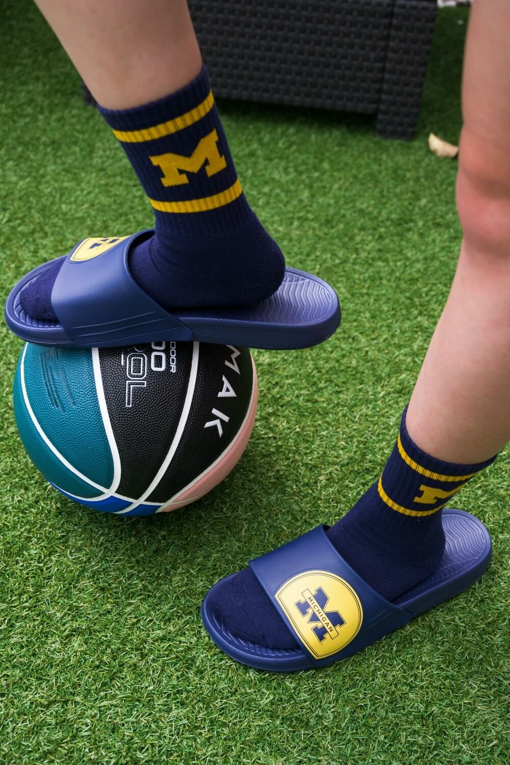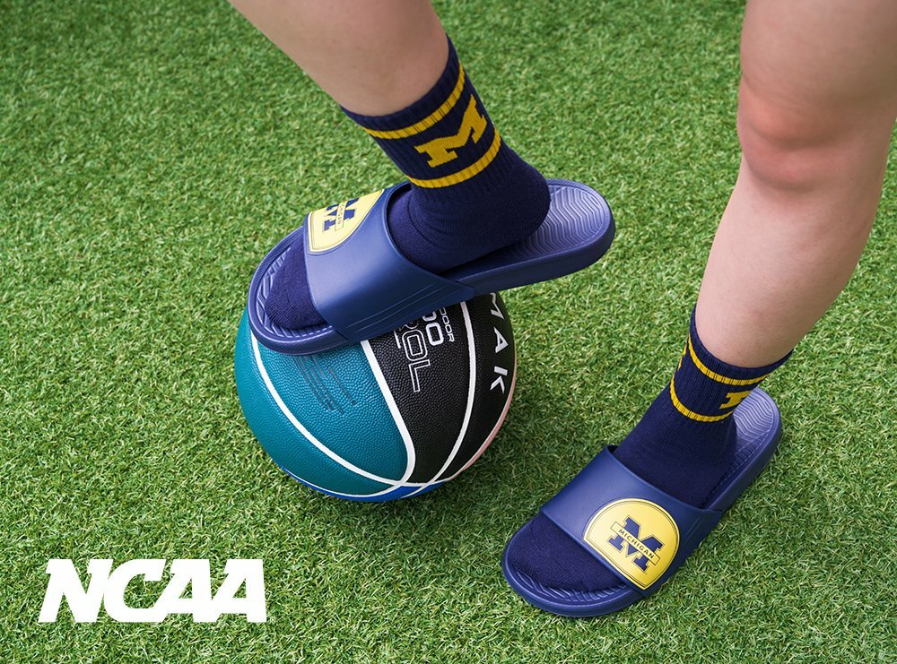一款專為喜愛大學運動隊的男性設計的長襪,印有各大學隊伍的標誌和顏色。