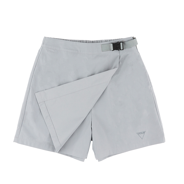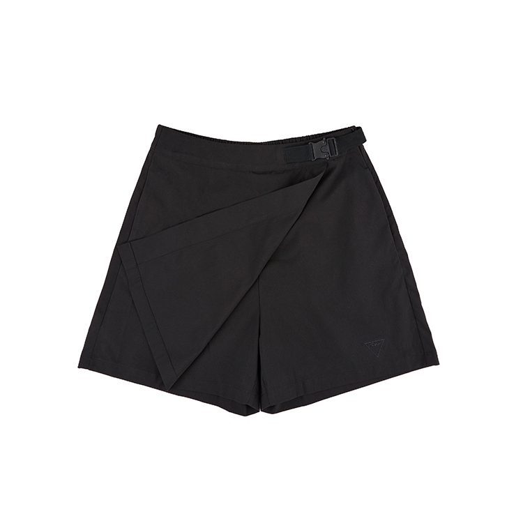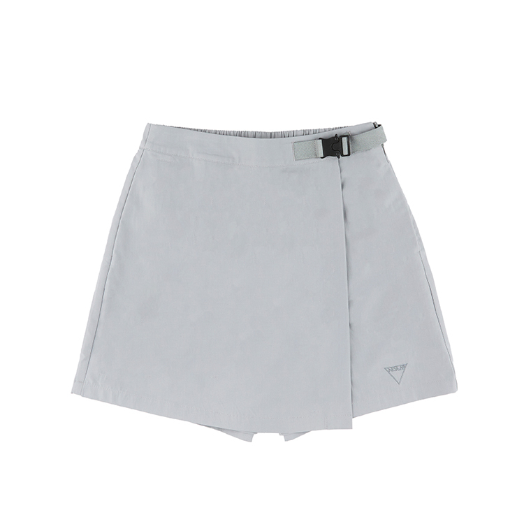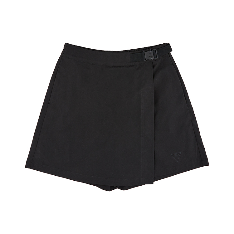 褲裙線條,兼具造型及方便性,前半部片裙的設計使整體多了變化性,腰部固定式腰帶增加層次感,褲腳LOGO刺繡精緻簡約,與上衣成套搭配展現甜酷工裝風格。