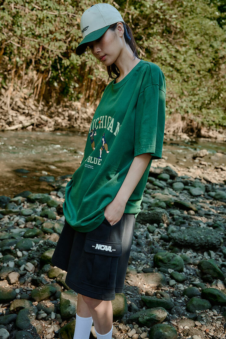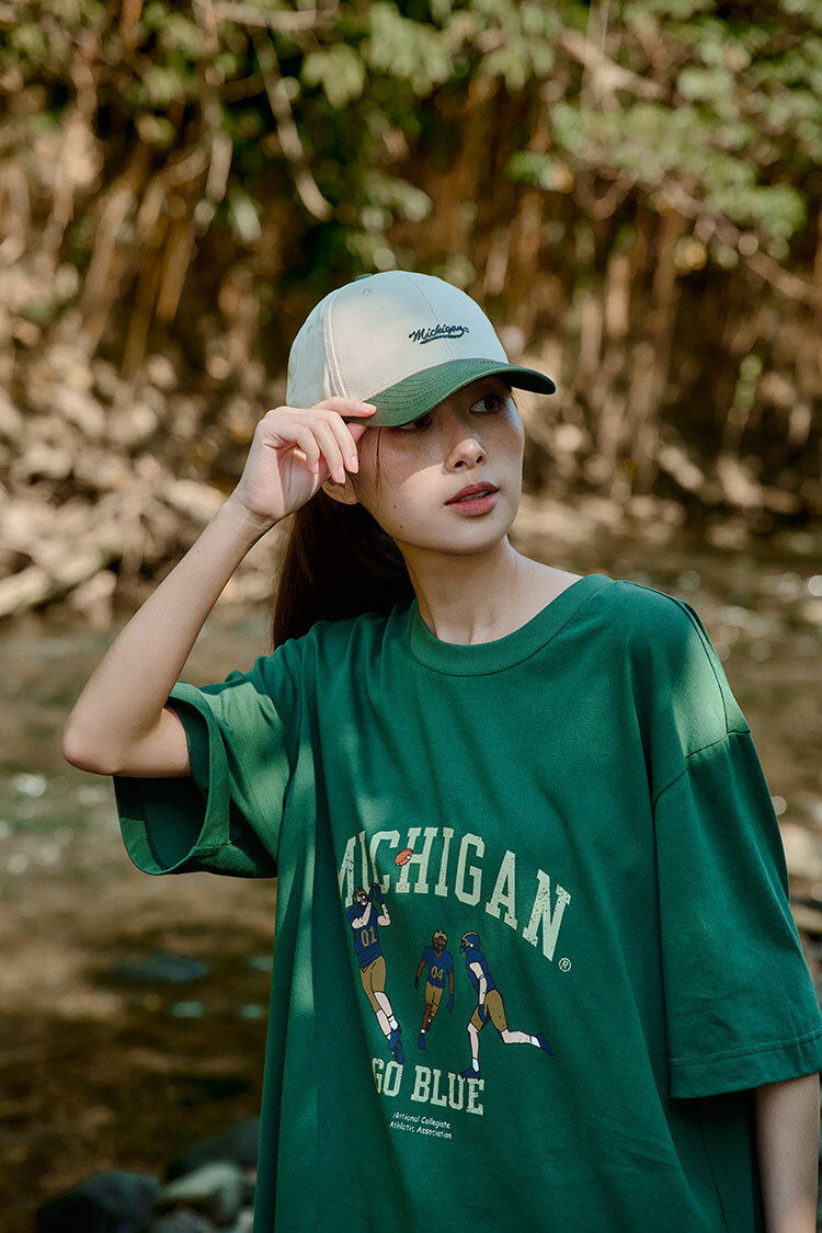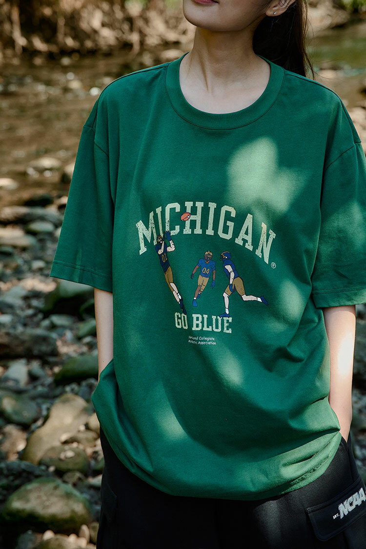 版型寬鬆休閒,全棉材質舒適透氣,前胸密西根球隊復古運動大印花。