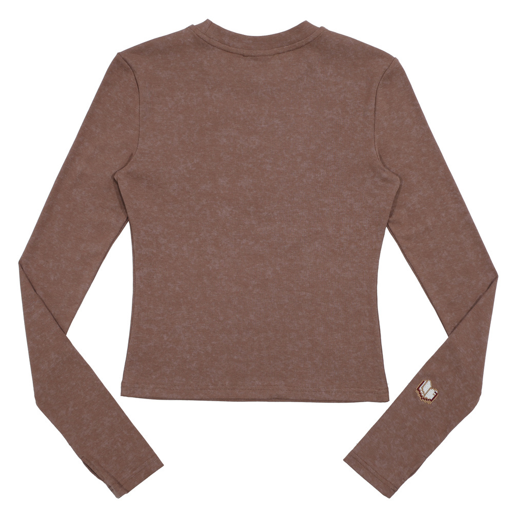 渲染印花面料,高彈性,合身不貼身,可當內搭,外穿也不尷尬,袖長加長可露大拇指,前胸學校印花+袖口精緻此袖,整體展現個性時髦感
