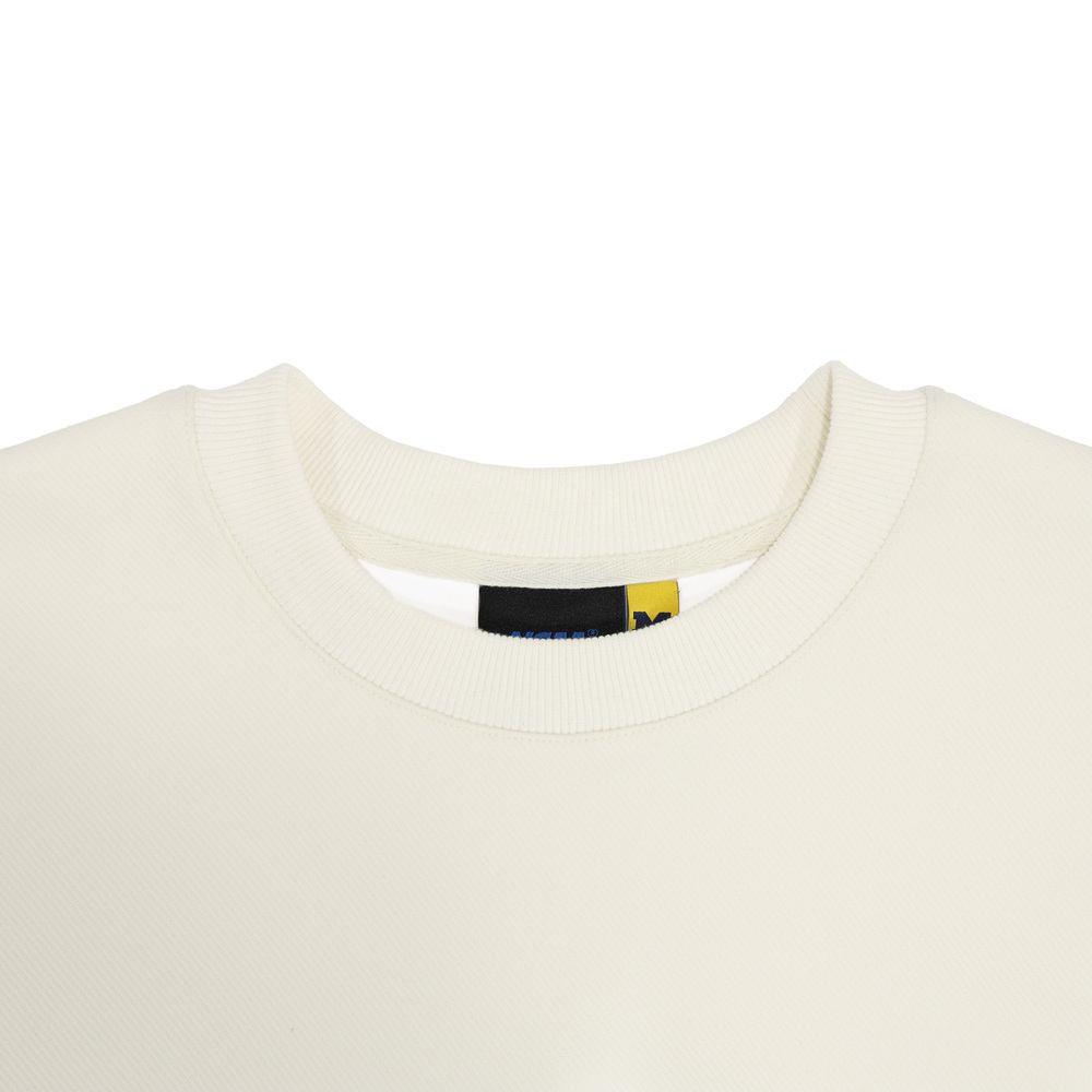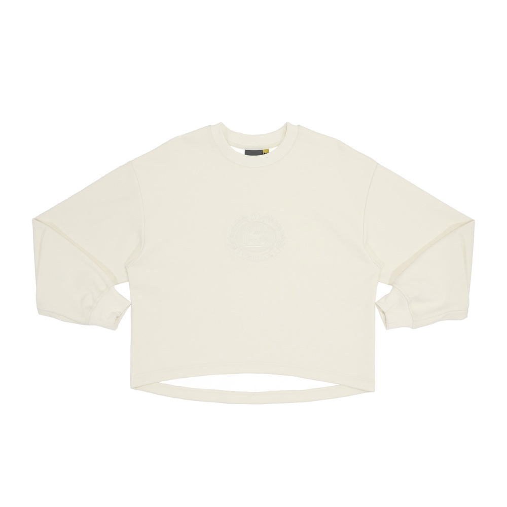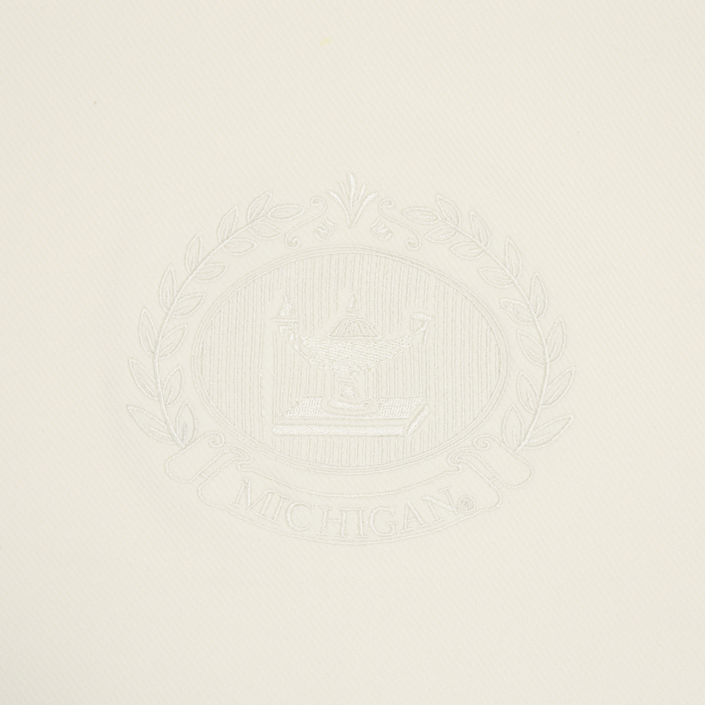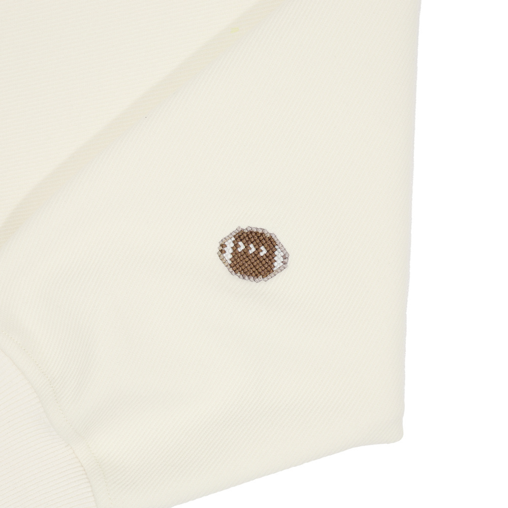 胸前大橢圓校徽刺繡與袖花同色系,低調一致,袖口點綴代表校園的像素圖騰,展現學院風細節感