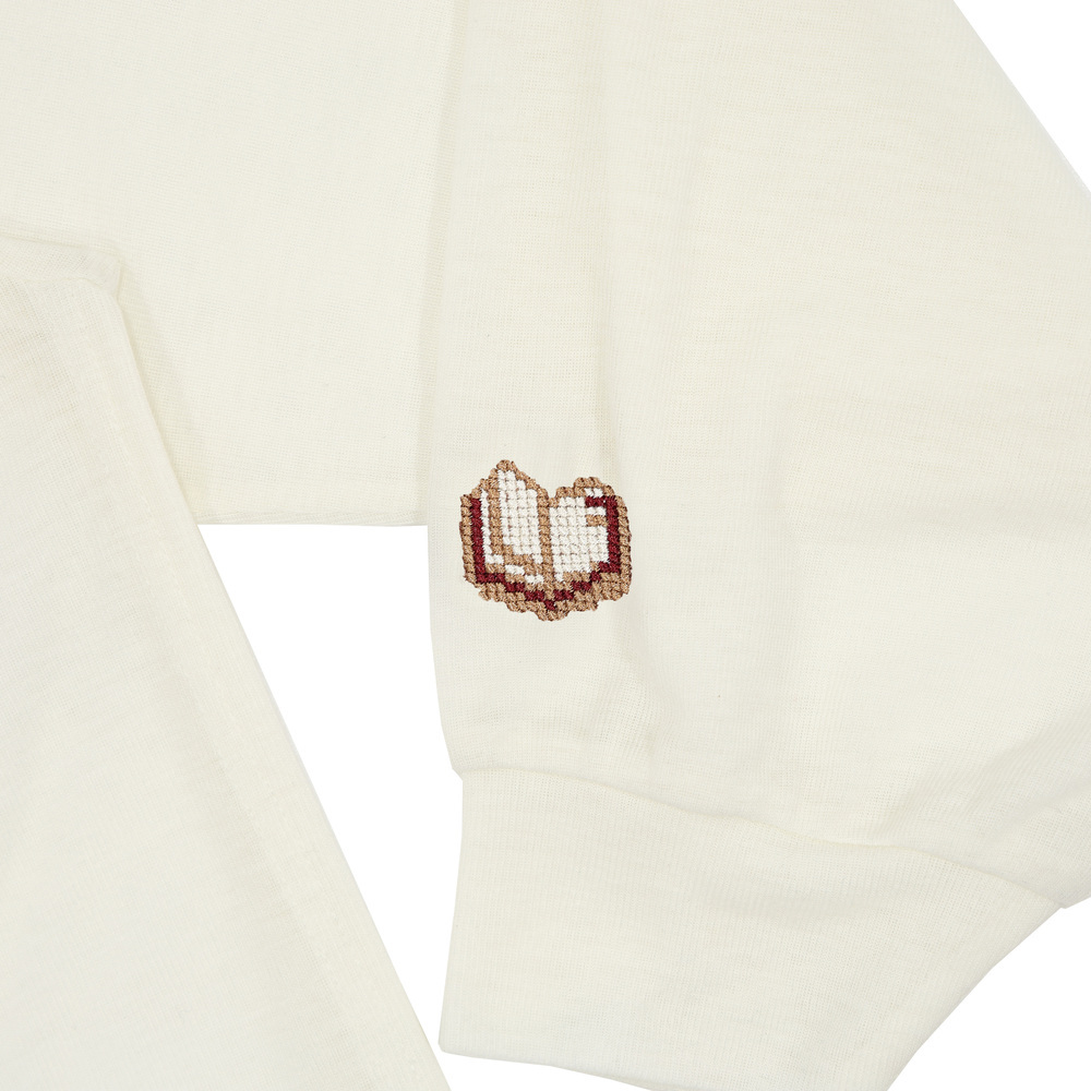 透膚輕盈感,換季或冷氣房的好選擇,面料輕柔舒適,前片學校像素印花,袖口綴有精緻代表性圖騰像素繡花,加一件內搭即可呈現若隱若現的休閒時髦感