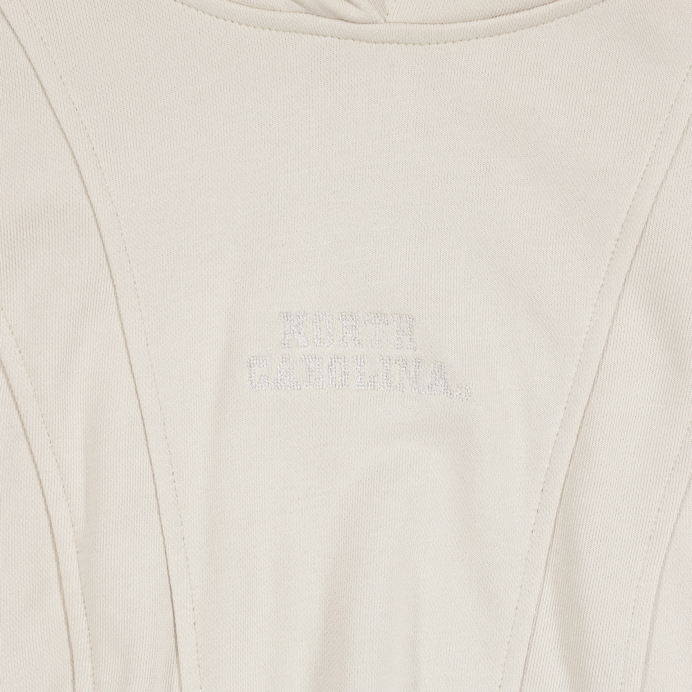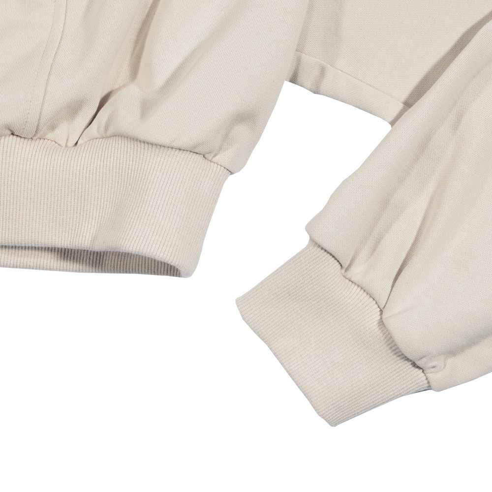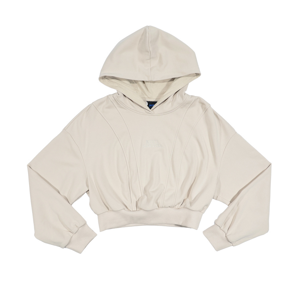特殊剪接帽T,與套裝長裙的線條相呼應,前胸精緻學校logo刺繡呈現學院氛圍,短版造型讓你不論下半身穿甚麼都活力好搭,色系呈穩經典,是秋冬的好選擇