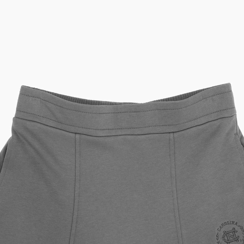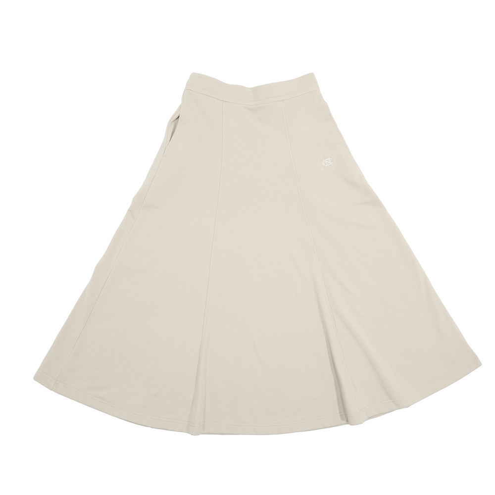特殊剪接圓裙,與套裝帽T線條相呼應,側邊繡有經典校園logo,波浪下擺呈現柔軟氛圍,沉穩色系好搭不無聊