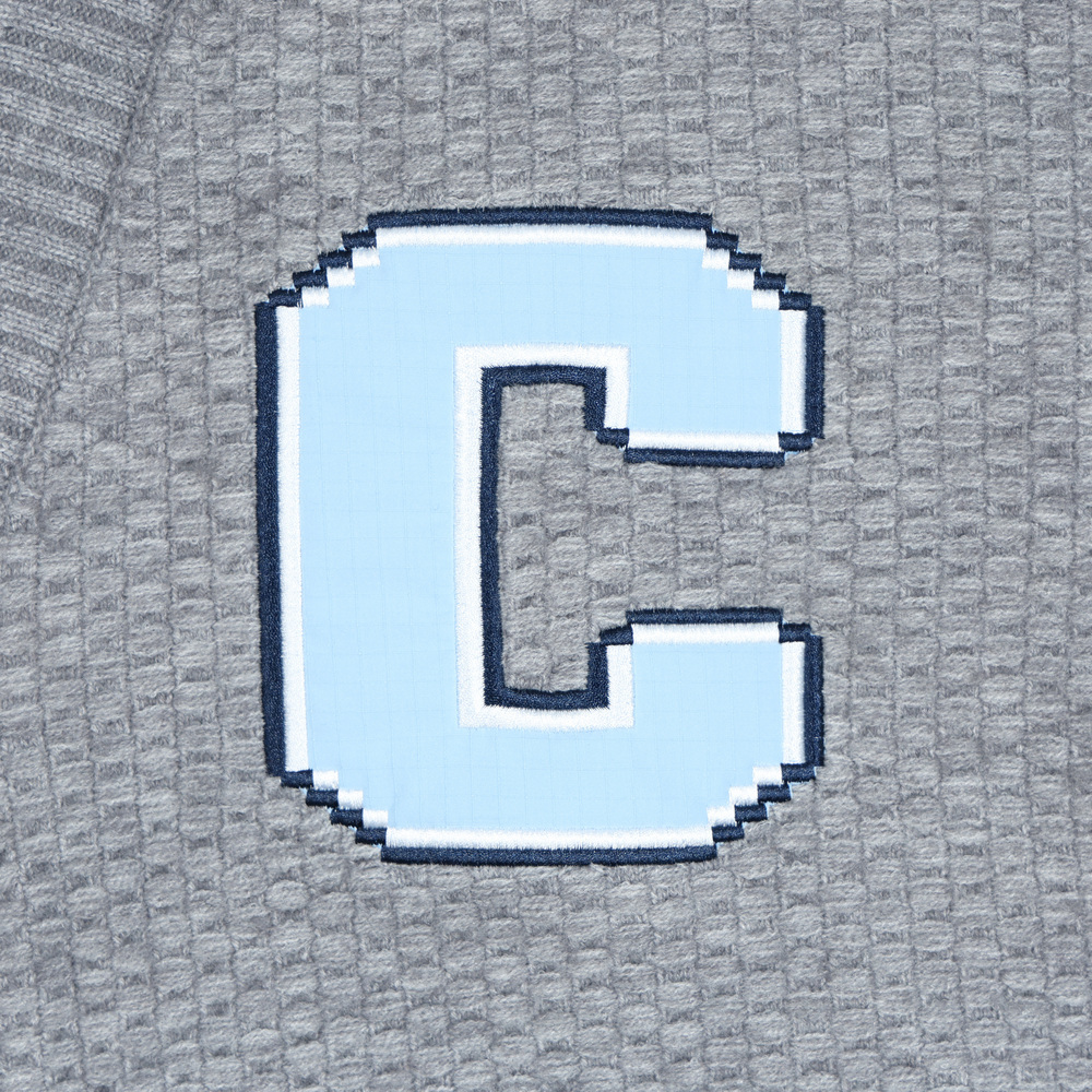 特殊格紋織法的毛衣外套,為沉悶的冬天增添新意,前胸大logo貼布繡帶出經典學院風格,袖口精緻像素刺繡貼合本季主題,給你不一樣的冬天