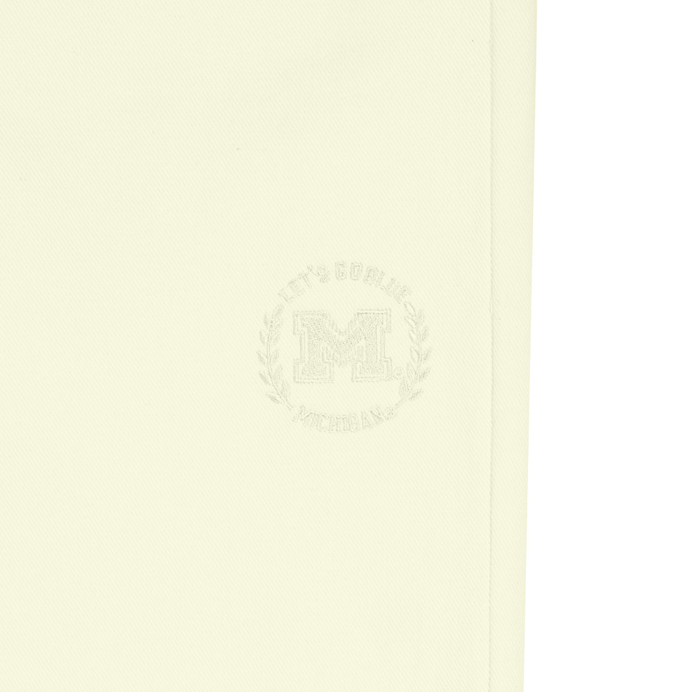 斜紋布料,手感微挺,可正式可休閒,簡約好搭,下邊繡著學校裝飾logo,呈現菁英學院感
