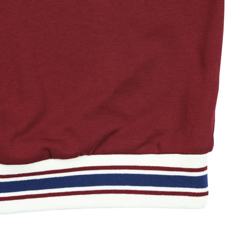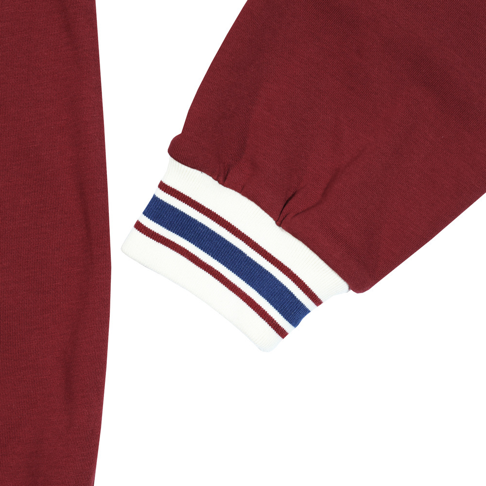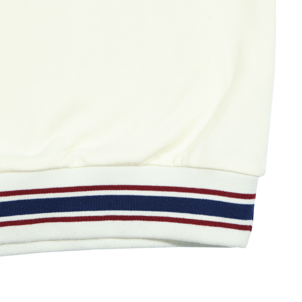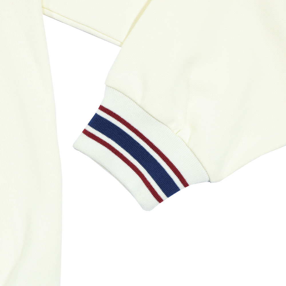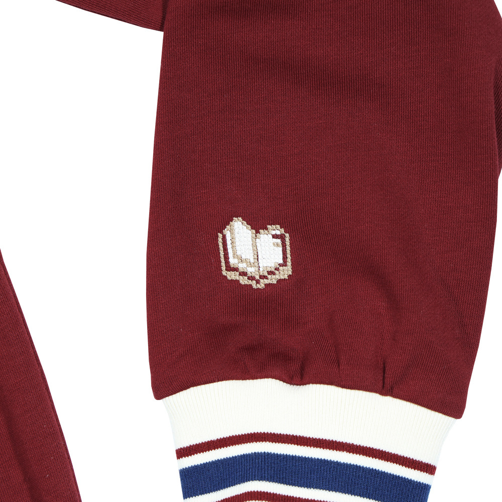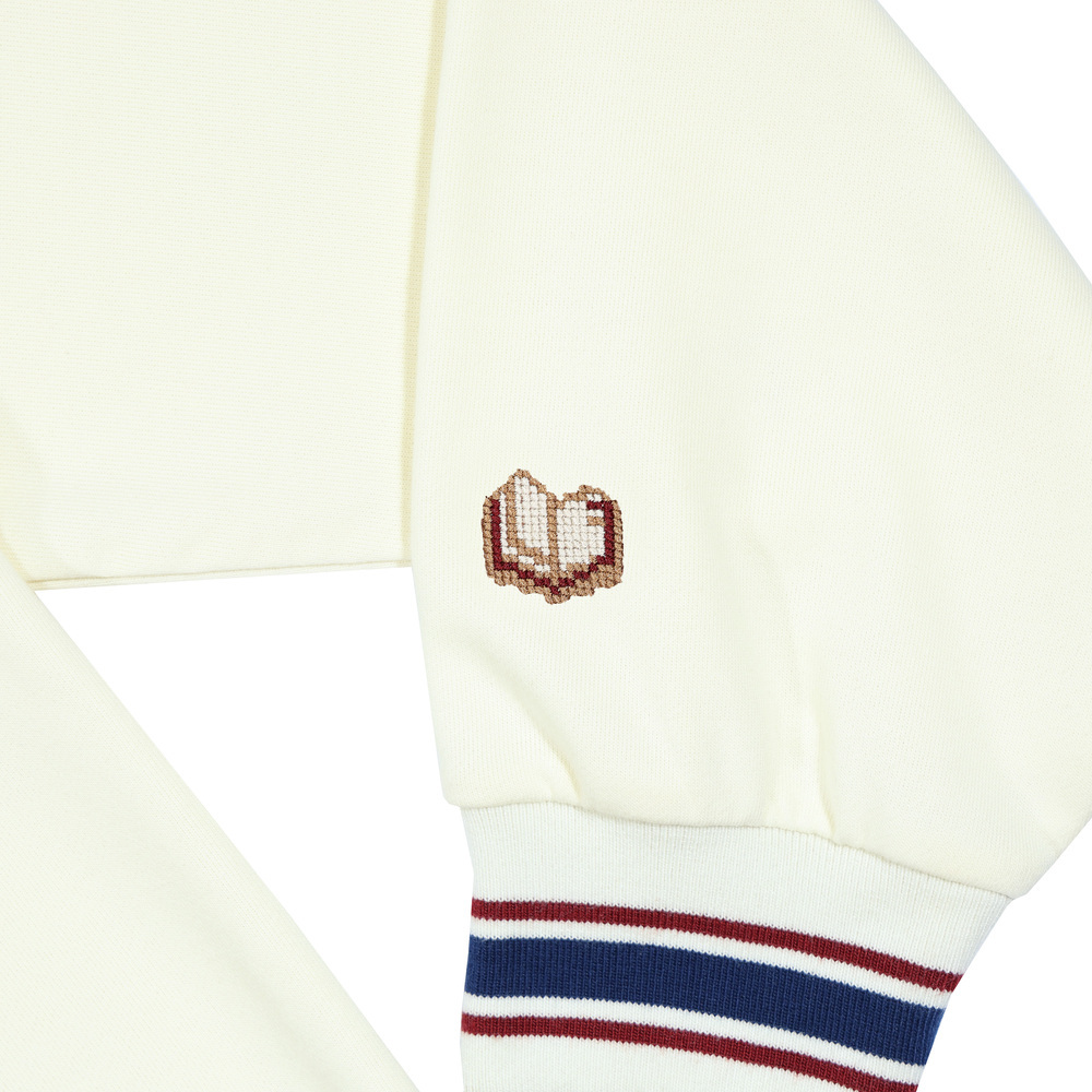 特殊像素學校logo繡花,搭配線條配色羅紋,呈現活力校園感,袖口綴有精緻刺繡,提升整體質感氛圍