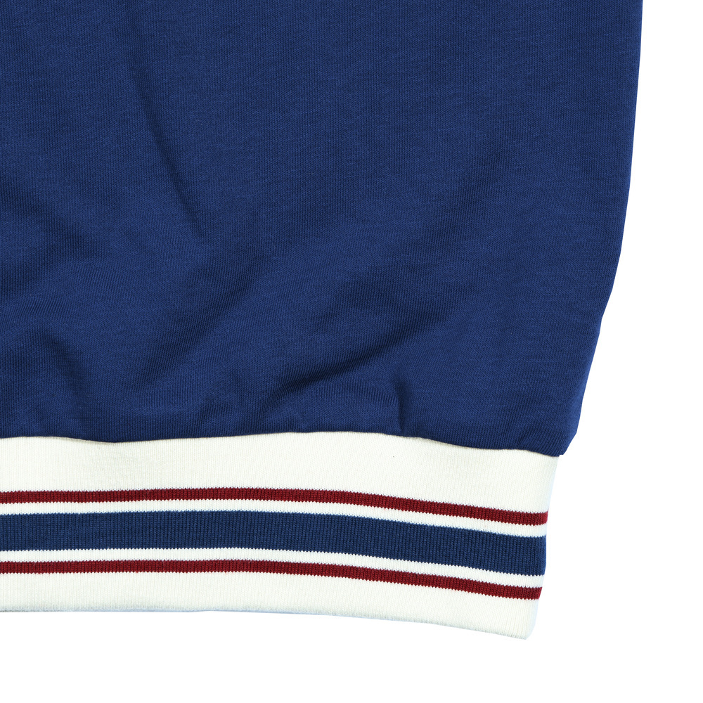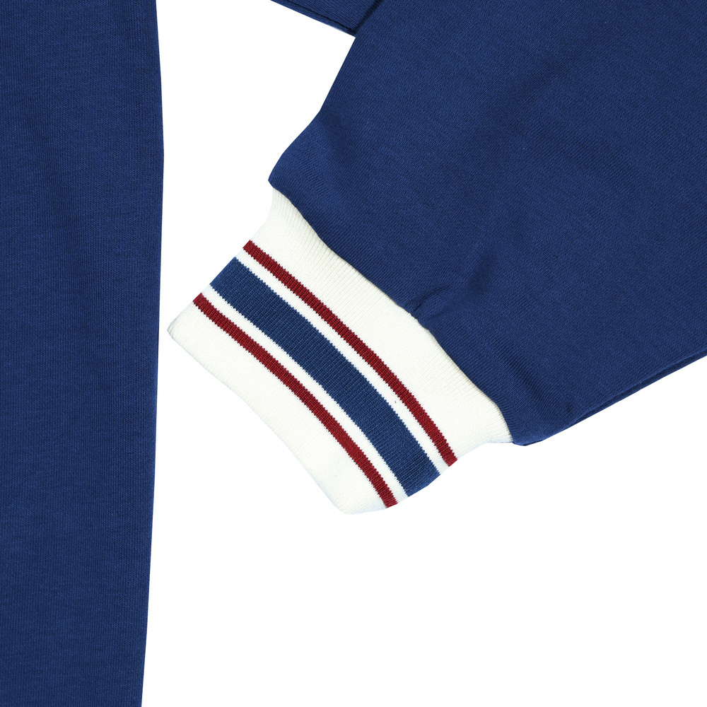 特殊像素學校logo繡花,搭配線條配色羅紋,呈現活力校園感,袖口綴有精緻刺繡,提升整體質感氛圍