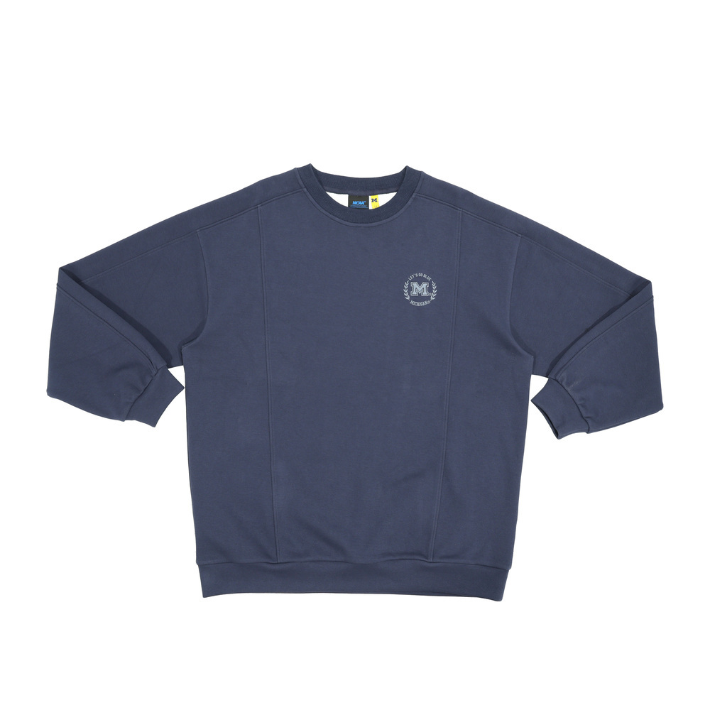 特殊剪接上衣,面料微挺有精神,前胸繡有經典學校logo,呈現菁英學院感,造型剪接讓基本的圓領T不無聊,低調又有質感