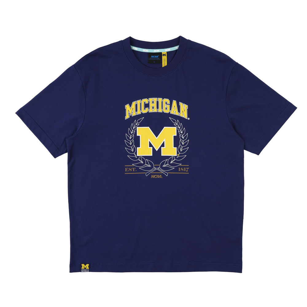 寬鬆版型 T 恤,結合學校經典 Logo 與象徵榮耀的桂冠圖案,低調中帶有態度,
