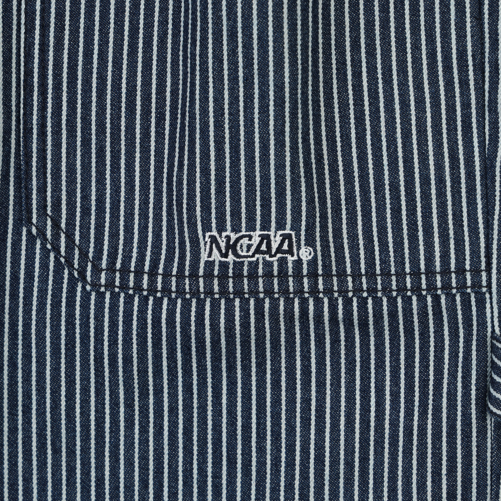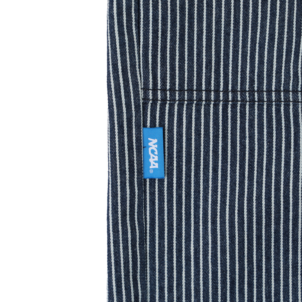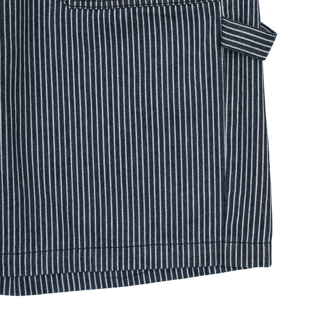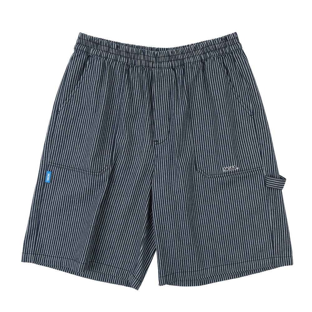 五分工裝褲型結合牛仔條紋元素與水洗素面,