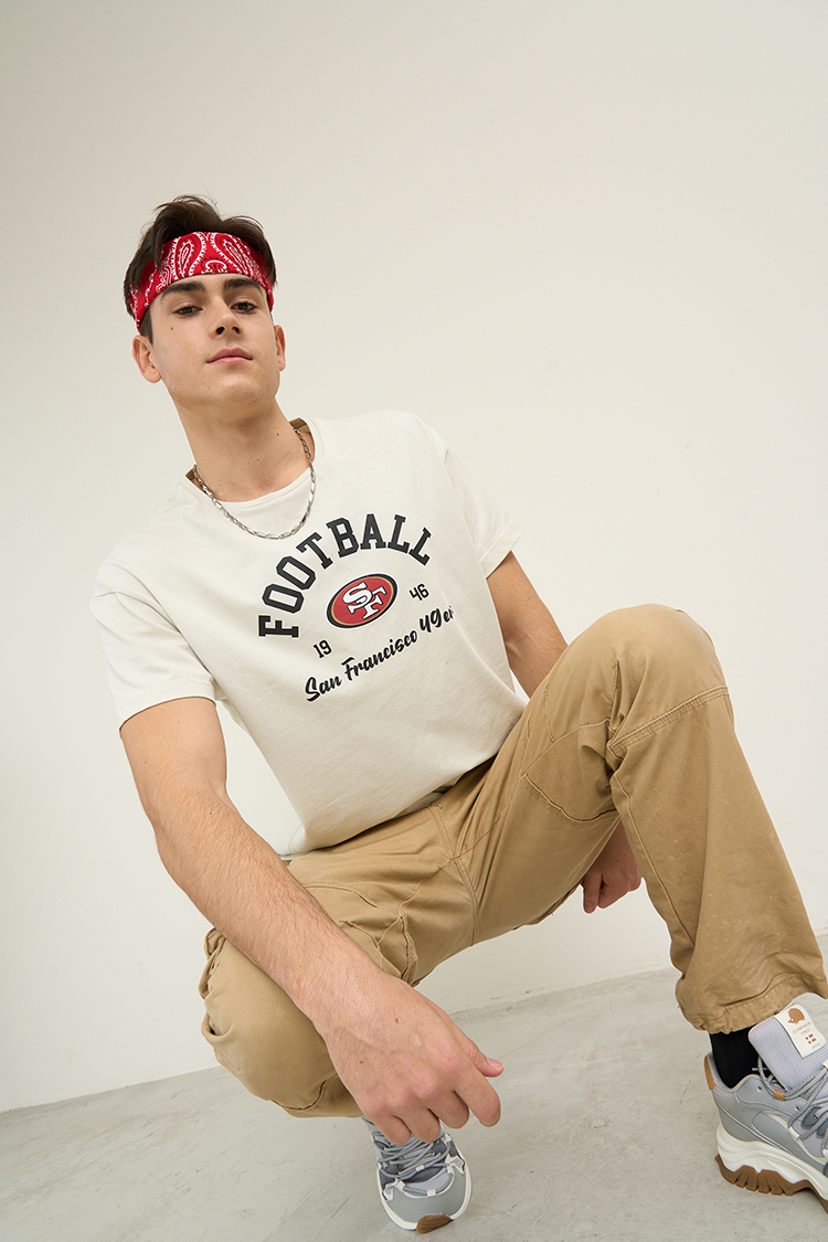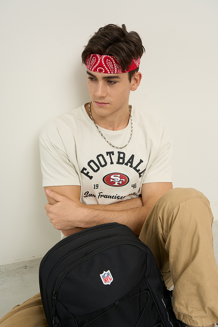 這款上衣以其獨特的落肩設計和醒目的49人隊Logo,向世人展示了你對球隊的熱愛與忠誠。